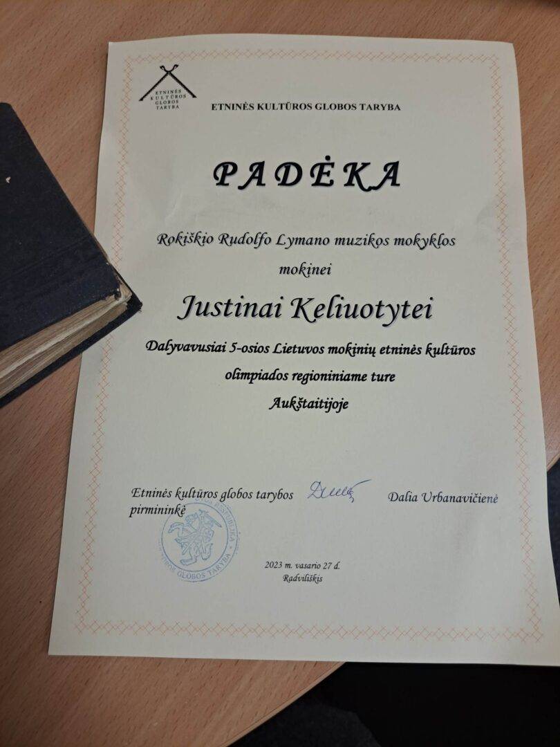 Visai neseniai, 2023 m. vasario 27 d., Justina dalyvavo Lietuvos mokinių etninės kultūros olimpiados Aukštaitijoje regioniniame ture, kuris vyko Radviliškyje. Olimpiadą penktą kartą organizavo Etninės kultūros globos taryba. Justinos mokytoja, R. Lymano muzikos mokyklos etnomuzikos mokytoja L. Bieliūnienė, sako, kad tik iš pradžių atrodę, jog tokioje olimpiadoje bus lengva. 2018 m. joje dalyvavo net 17 mokinių iš Rokiškio rajono, tačiau kitais metais norinčiųjų ten vykti liko tik 3. Šiemet Justina Rokiškio kraštui olimpiadoje atstovavo viena. Ji pristatė Kriaunų krašto kantičkines giesmes.