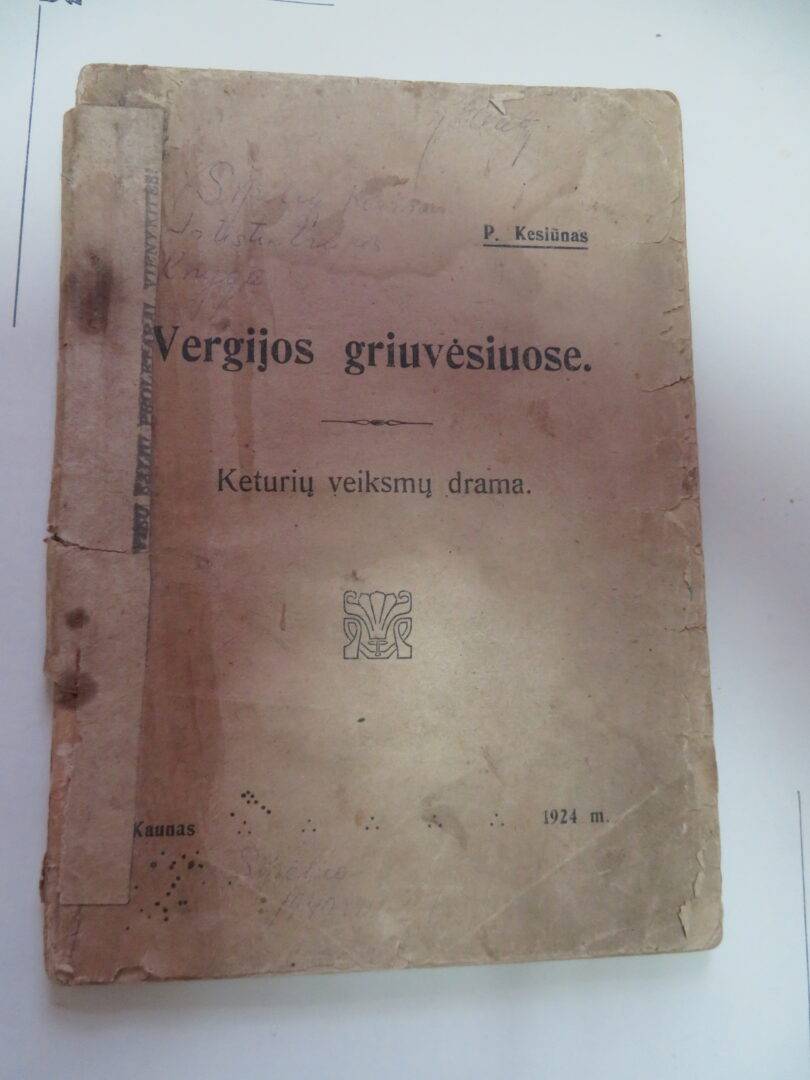 P. Kesiūno drama „Vergijos griuvėsiuose“ ir romanas „Tarp žalsvų palapinių“ saugomi Rokiškio krašto muziejaus fonduose. 1924 m. išleista drama atrodo suvargusi nuo metų naštos, jos puslapius tenka praskleisti labai atsargiai. Beveik trimis dešimtmečiais „jaunesnio“ romano išvaizda gerokai puikesnė. Jo turinys sudomintų tuos, kuriems artima pokario ir partizaninių kovų tema.