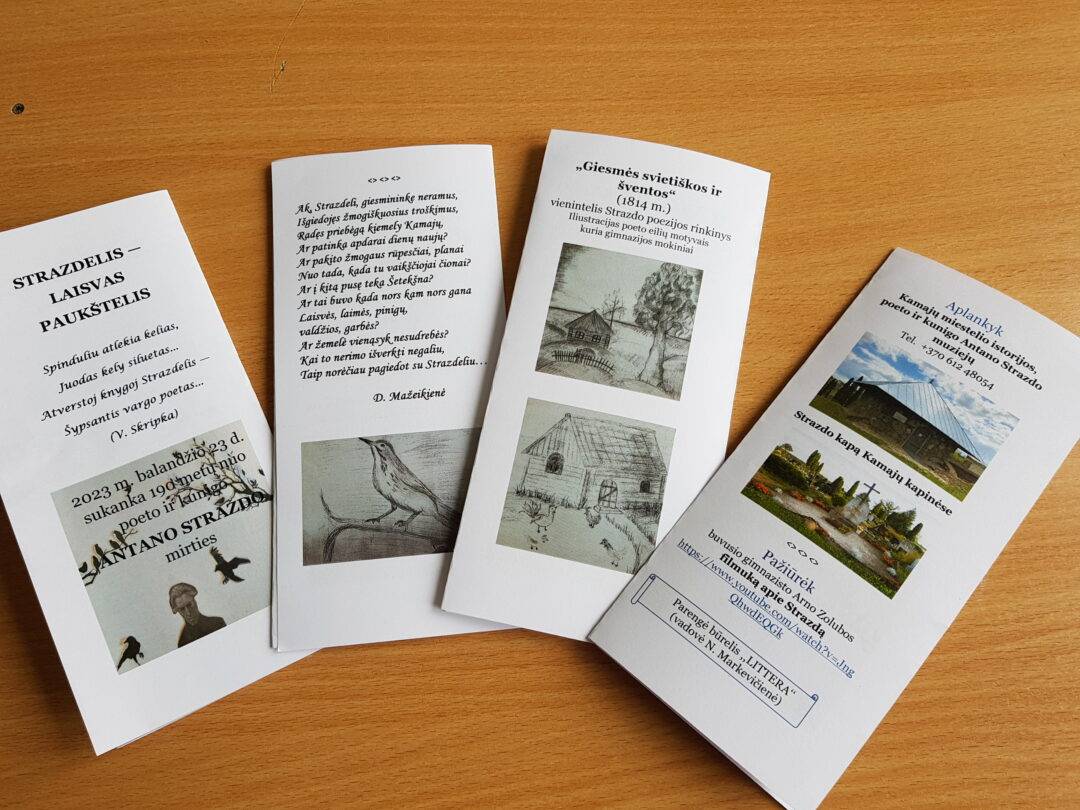 Atsiliepdami į iniciatyvą minėti sukaktis mokiniai gamino suvenyrinius strazdukus, kurie papuoš Kamajų miestelio aikštę bei poeto kapą, vyko integruotos pamokos, klasių valandėlių metu vaikai lankėsi interaktyviame Antano Strazdo muziejuje. Mokyklos bibliotekoje puikuojasi J. Lašienės parengta poeto atminimui skirta paroda „Pėsčias svieto paukštis“. Gimnazijos būrelis LITTERA (vadovė mokytoja N. Markevičienė) parengė informacinį lankstinuką, kurį 7 klasės mokiniai (klasės vadovė Z. Šivickienė) padovanojo Kamajų seniūnijos gyventojams.