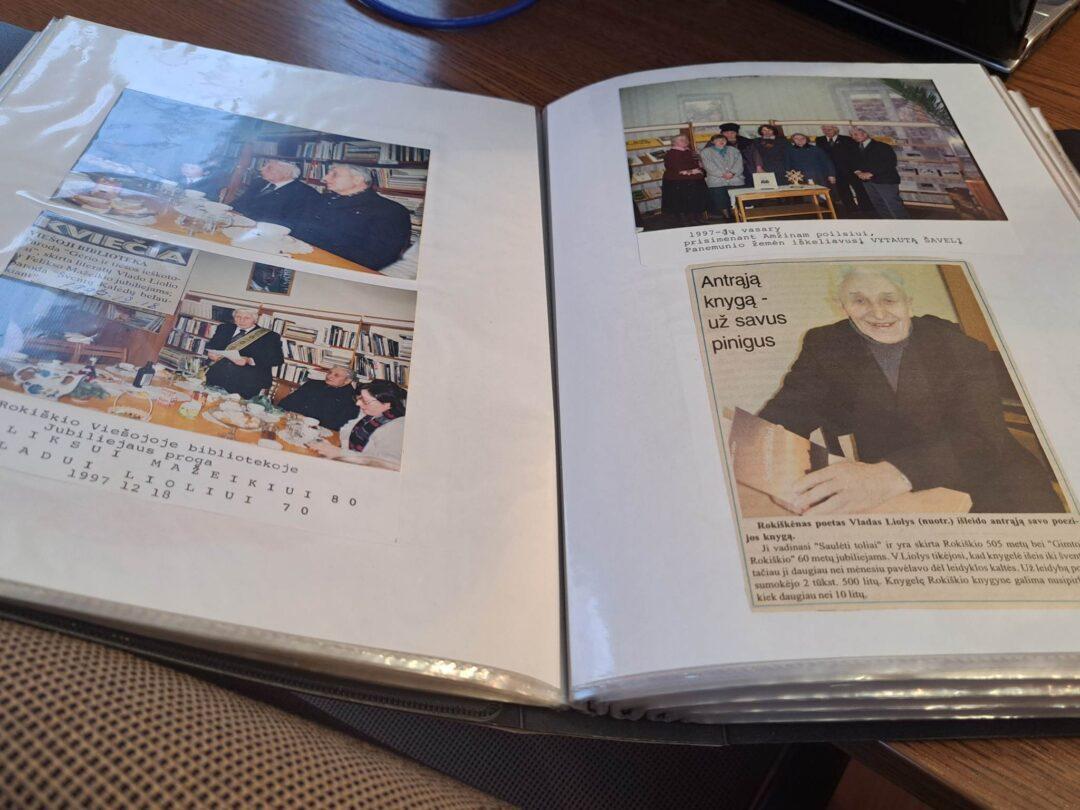 Segtuvas, pavadintas „Literatūriniai balsai“, – literatų klubo „Vaivorykštė“ narių veiklos, eilėraščių, atmintinų datų, pastebėjimų atgarsiai spaudoje. Taip pat – kitų žymių rašytojų sąsajas su Rokiškio kraštu fiksuojantis dienoraštis. Tai – kruopštus ir ilgametis darbas. Kitame segtuve – blaivybės draugijos „Baltų ainiai“ veikla – tikslai, programa, nariai, vadovai, renginiai, fotografijos…