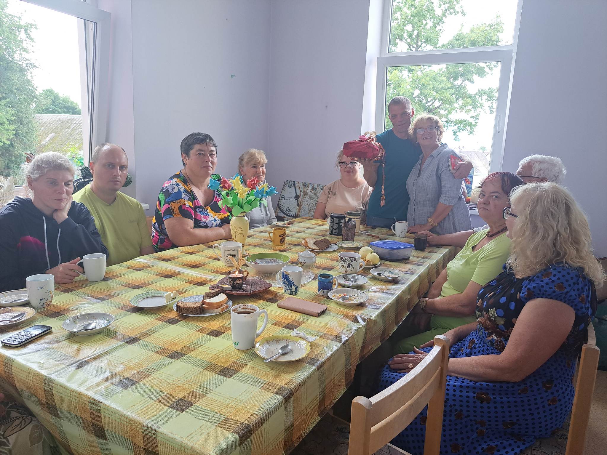 Užsukome ir į pastatą Vytauto gatvėje. Atėjome pačiu laiku – socialinės reabilitacijos paslaugas gaunantis Jonas kaip tik šventė gimtadienį. Prie stalo vaišes ragavo ir kiti lankytojai, kurie svečius priėmė itin šiltai. Apžiūrėjome patalpas, kur – ir biliardo stalas, ir muzikos instrumentai, ir įvairios priemonės vaikams. O nuoširdaus Jono džiugesio, kad jis yra ne vienas, o būryje jį palaikančių žmonių, buvo neįmanoma nepastebėti…