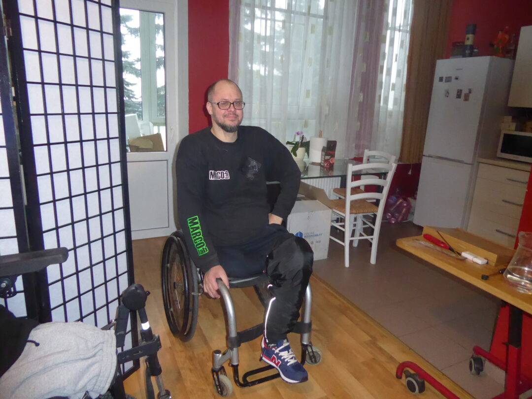 Nors, atrodo, koks čia gyvenimas, kai negali būti visiškai savarankiškas, o kiekviename metre judant vežimėliu tyko iššūkiai, Marius nesiskundžia. Jis gyvena vienas pritaikytame socialiniame būste, o pasirūpinti kasdienybe padeda atvykstančios slaugytojos – dvi yra iš vadinamųjų „valdiškų“ įstaigų, o savaitgaliais ar vakare Marius samdosi žmones pats asmeniškai. Turėjęs Marius ir asmeninį asistentą, kuris padėdavo apsipirkti, tačiau dėl jam ne visai suprantamų priežasčių asistento nebelikę – sakyta, kad baigėsi finansavimas. Paklaustas, su kokiais judėjimo vežimėliu sunkumais susiduria mieste, Marius numojo ranka: „Ai, tiek to. Kai žinau, kur negalėsiu užvažiuoti, ten ir nevažiuoju. Būtų gerai bent tiek, kad tiesiant naujus šaligatvius, nebūtų padaryta klaidų ir pagalvota apie neįgaliuosius“. Vyrui reikia padėti nusimaudyti, apsipirkti, nes parduotuvėje tikrai nėra galimybės pasiimti prekių iš lentynų. Na, o vežimėlis nelabai klauso tada, kai lauke – šlapias sniegas, paliję, daugiau pasnigę, tad tenka prie to taikytis arba ieškoti pagalbininkų. Norint nuvykti kur nors toliau, tenka prašyti Neįgaliųjų draugijos pagalbos – pigesnio pavėžėjimo neįgaliesiems paslaugą jie teikia nuolat.