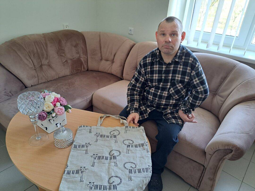 Įstaigos gyventojai kartu su lydinčiais darbuotojais visuomeniniu transportu nuvažiuoja ir į Rokiškį apsipirkti. Taip pratinasi prie savarankiškumo. Pasak Vaidos, ir apsiperkant reikia įžvelgti tvarumą, tad skatinama, kad globotiniai naudotų daugkartinius prekių maišelius. Kaip vieną iš pavyzdingiausių gyventojų ji pristatė Vladą, kuris vienas pirmųjų mugėje įsigijo iš audinio pasiūtą maišelį. Vyras sutiko jį parodyti. Pasak Vaidos, Vladas ypač tvarkingas, tad ir maišelis visuomet išlygintas, prižiūrėtas.