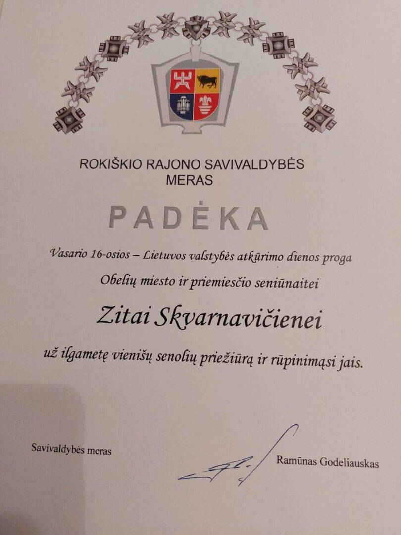 „Labai gera, kai žmogus pradaro duris, sako „laba diena“ ir jauti šilumą. Kadaise buvau aktyvi saviveiklininkė, pripratau būti tarp žmonių, o dabar iš 8 vaikų esu likusi viena, vyro nebeturiu, o dėl judėjimo problemų pati niekur nebeišeinu. Noriu pasakyti, kad Zita – Obelių papuošalas. Ji pas žmones prieš Kalėdas apsilanko vietoje Kalėdų Senio. Tariu jai „didelį didelį ačiū“, – sako Elytė.