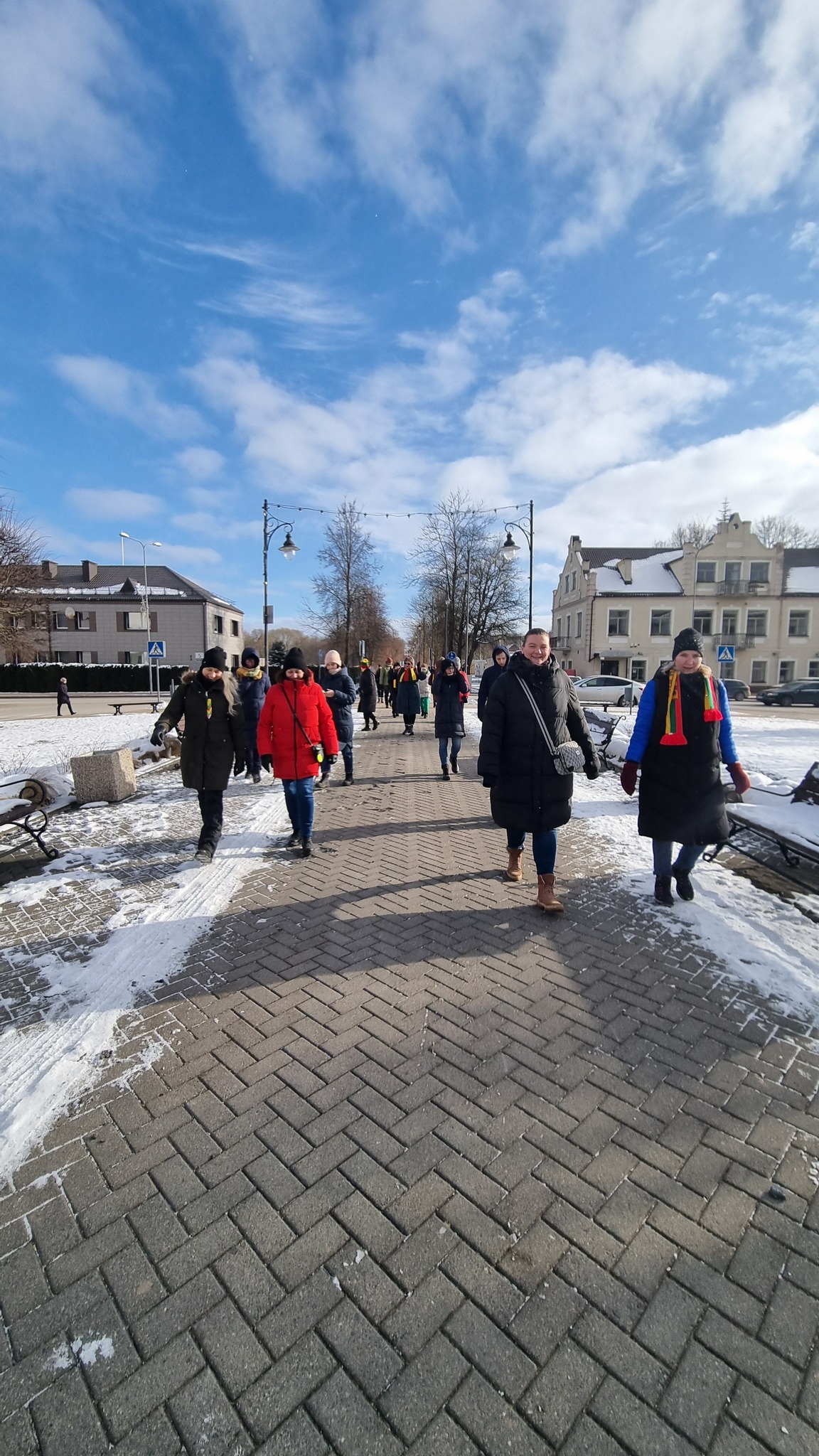 Visą mūsų žygį lydėjo puikus oras – saulė švietė lyg specialiai užsakyta, dar labiau pakylėdama žygeivių nuotaiką. Atrodė, kad net gamta prisijungė prie mūsų šventės – saulės spinduliai ir šaltukas glostė veidus, o lengvas vėjelis nešė žodžius apie istoriją ir laisvę. Kiekvienas žygio žingsnis jungė praeitį su dabartimi, leisdamas pajusti, kad biblioteka – ne tik knygų namai, bet ir gyvas miesto atminties sergėtojas. Vienas iš žygio momentų buvo įsiamžinimas prie Rokiškio Nepriklausomybės paminklo – tai simbolinė duoklė mūsų istorijai.