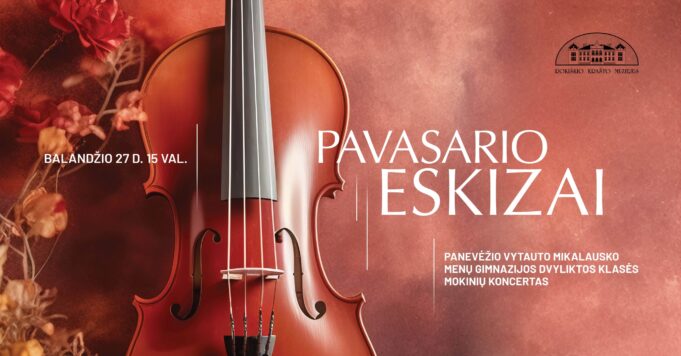 Čia 15 val. koncertuos Panevėžio Vytauto Mikalausko menų gimnazijos dvyliktokai, mokytojų Ingos Ūsienės ir Artemijaus Esaulkovo mokiniai – smuikininkės Flora Kemundrytė ir Liepa Buraitytė bei fortepijonininkas Aleksejus Čibisovas. Jų koncerte „Pavasario eskizai“ išgirsime Giovannio Batistos Pergolesio, Sergejaus Rachmaninovo, Johano Sebastiano Bacho, Frederiko Šopeno, Josepho Haydno ir kitų kompozitorių kūrinius, atliekamus ir solo, ir ansamblio. Jauniesiems muzikams jau dabar prognozuojama šviesi profesionalų ateitis.