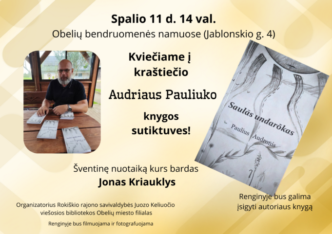 Spalio 11 d. 14 val. Obelių bendruomenės namuose (Jablonskio g. 4) kraštiečio Audriaus Pauliuko knygos sutiktuvės.