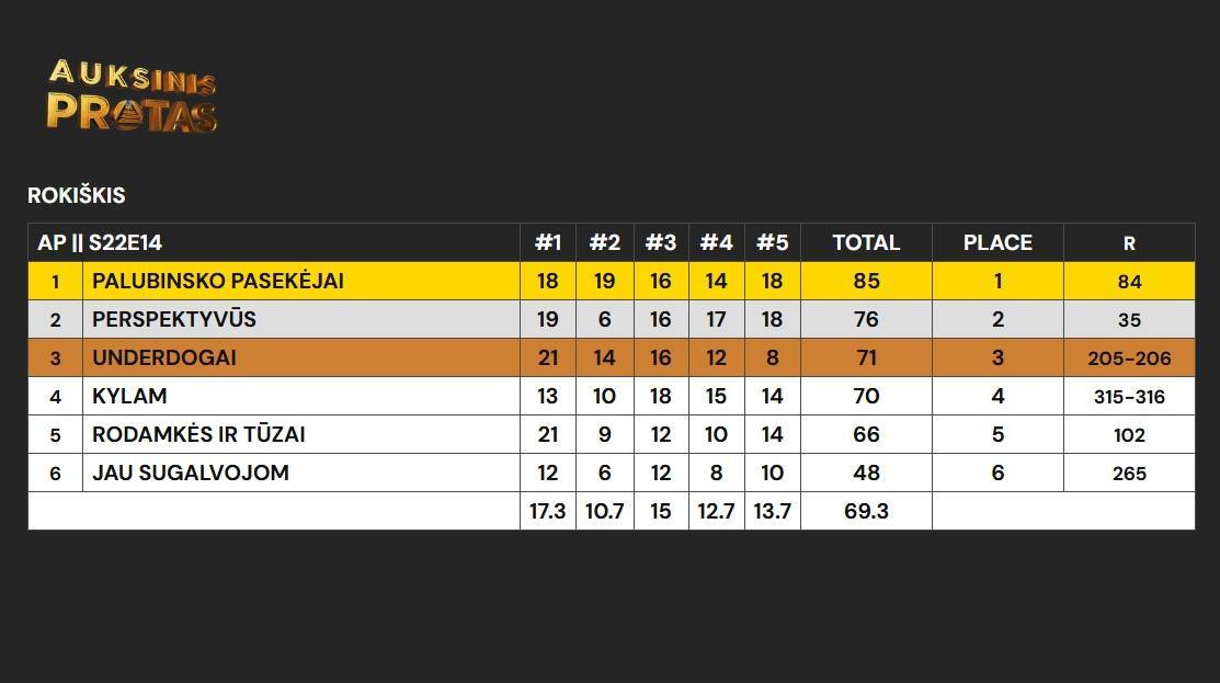 Bendroje Lietuvos įskaitoje „Perspektyvūs“ užėmė visai neprastą 37 vietą iš daugiau kaip 500 komandų, kuri leido jiems patekti į finalinį sezono žaidimą, vyksiantį Druskininkuose gruodžio 14 d. Į pirmąjį šimtuką pateko ir „Palubinsko pasekėjai“ (83 vieta), visai netoli jo (106 vieta) liko „Rodamkės ir tūzai“.