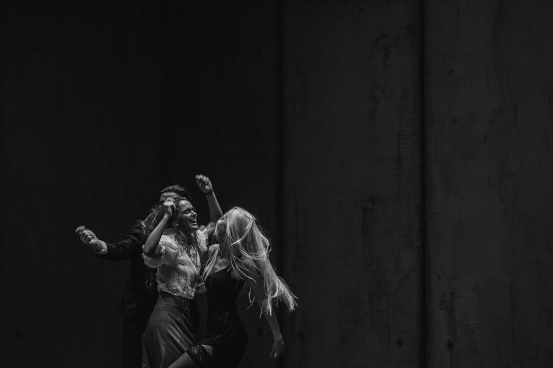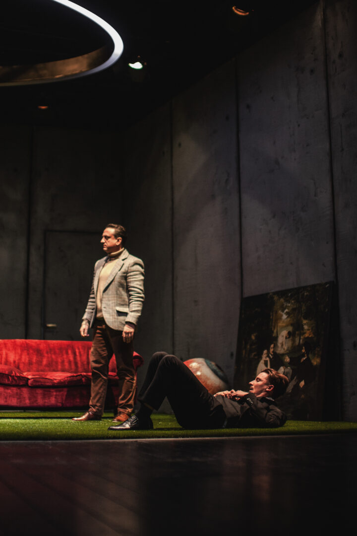 Šiuolaikinio švedų dramaturgo Larso Noréno pjesė „Demonai“ – negailestingai atvira ir su nemenka absurdo humoro doze. Veiksmas vyksta puikiai įrengtame bute. Scenoje keturi trisdešimties metų žmonės – dvi susituokusios poros, gyvenančios tame pačiame daugiabučiame name. Už klestinčio pasiturinčių šeimų fasado – lėta ir neišvengiama katastrofa, kuri vyksta kasdien. Ne veltui Norénas dažnai sugretinamas su Strindbergu – jo „Demonai“ yra apie tą patį žmogiškąjį paradoksą: sugebėjimą (ir net slaptą vidinį norą) kito, artimo ir gal net tebemylimo žmogaus, gyvenimą paversti pragaru.