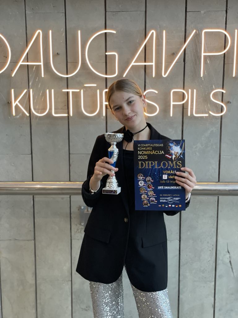 Daugpilio kultūros rūmuose vyko VI tarptautinis konkursas „NOMINĀCIJA 2025“, kur mokytojos Redos Kazlauskienės dainininkės, ansamblis „Neužmirštuolės“: Marija Šniokaitė, Adelė Popovaitė, Faustina Šablinskaitė, Viktorija Ramanauskaitė, Milita Jasiūnaitė, Mėja Jasinevičiūtė, savo amžiaus kategorijoje iškovojo I vietą, o dvylikametė Urtė Smalinskaitė 12–14 metų kategorijoje – II vietą.