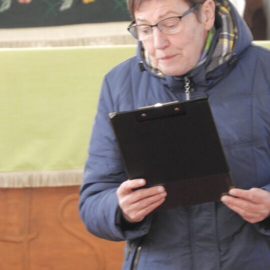 Čedasų Šv. apaštalų Petro ir Povilo bažnyčia, kur rinkosi žygio dalyviai, buvo pilna tarsi per atlaidus – svetingai visus pasitiko bei priėmė ir Čedasų klebonas Aivaras Kecorius, ir Pandėlio klebonas Albertas Kasperavičius, atvyko ir Panevėžio vyskupas emeritas Jonas Kauneckas. Bažnyčioje poetinį pranešimą apie Dianos Glemžaitės gyvenimą ir kūrybą perskaitė mokytoja Irena Varnienė, buvo parodytas filmas apie partizanų poetę „Kai Baltas Vytis pakils“.
