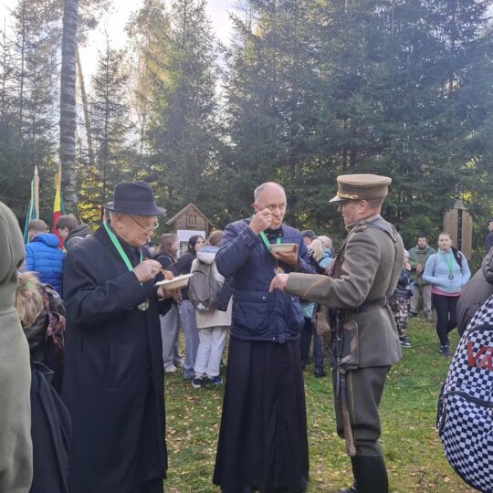 Šešių kilometrų žygis nuo paminklo iki partizanų žeminės Plunksnočiuose niekam nebuvo sudėtingas. Žengta sparčiu žingsniu, tik kartelį trumpam stabtelta jau pačiame miške esančioje aikštelėje. Užtat atėję prie žeminės visi gavo ne tik žygio atminimo medalius, bet ir šauliškos košės iš lauko virtuvėlės. Košė čia buvo labai laiku, nes jaunieji žygio dalyviai sakė, jog kojos pavargti nespėjo, bet praalkti tikrai praalko.