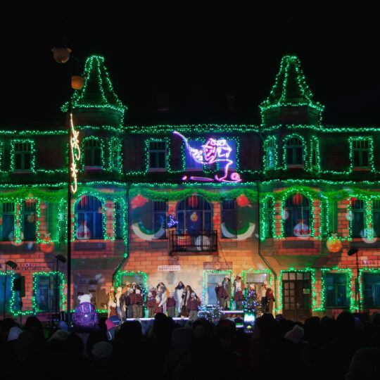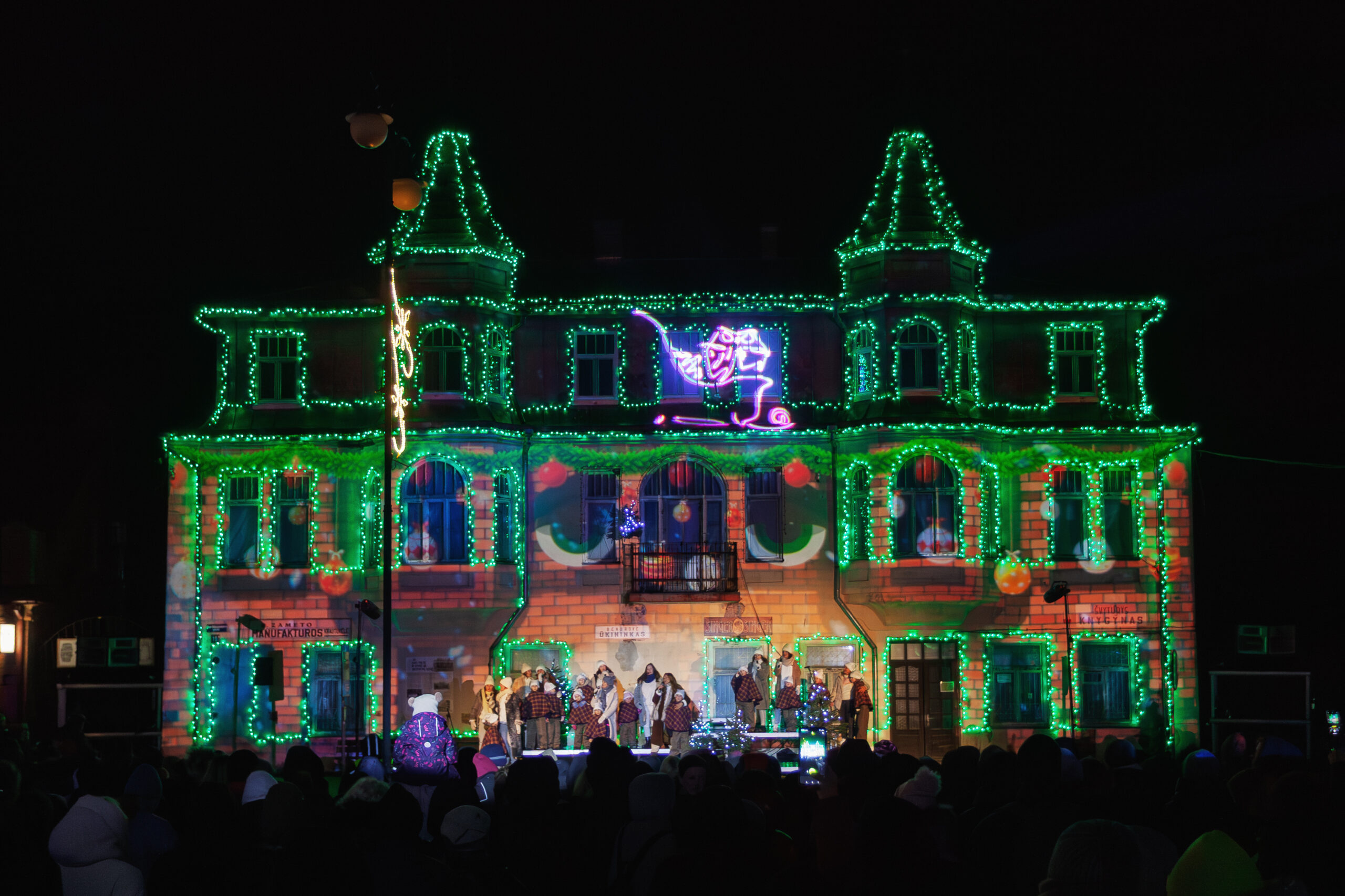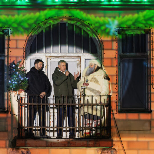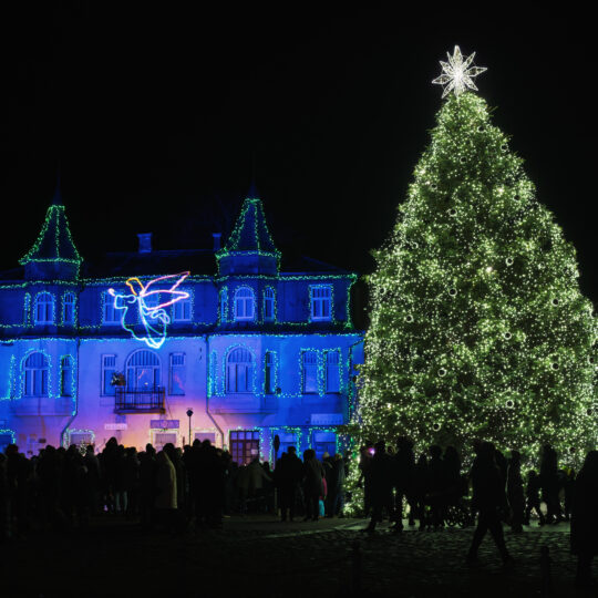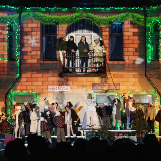 Po spektaklio meras Ramūnas Godeliauskas ir miesto seniūnas Arūnas Krasauskas įžiebė eglę.