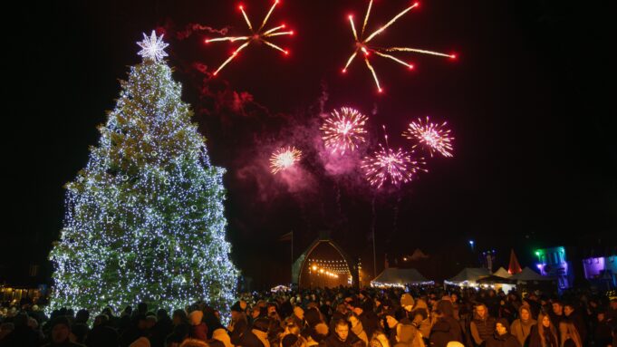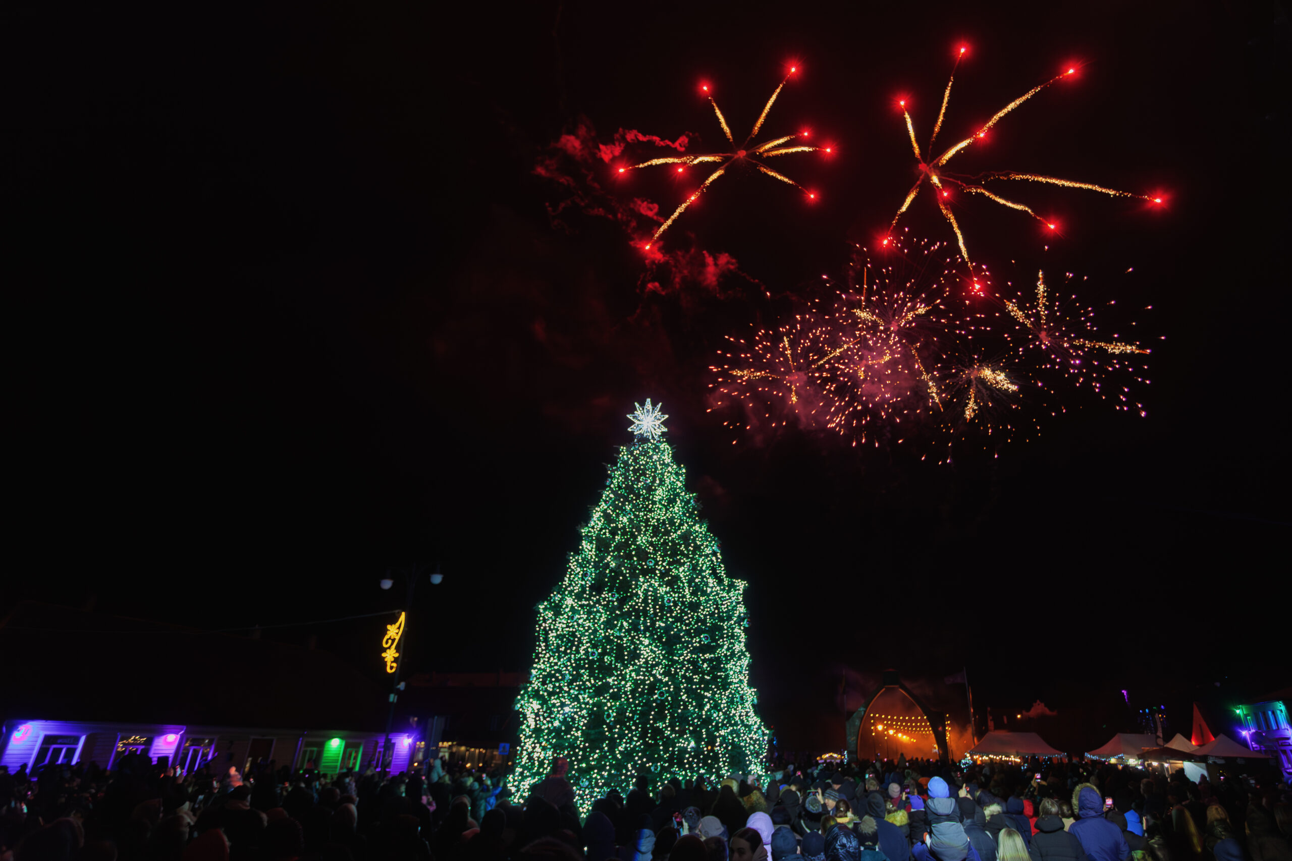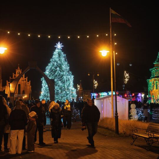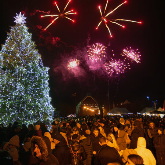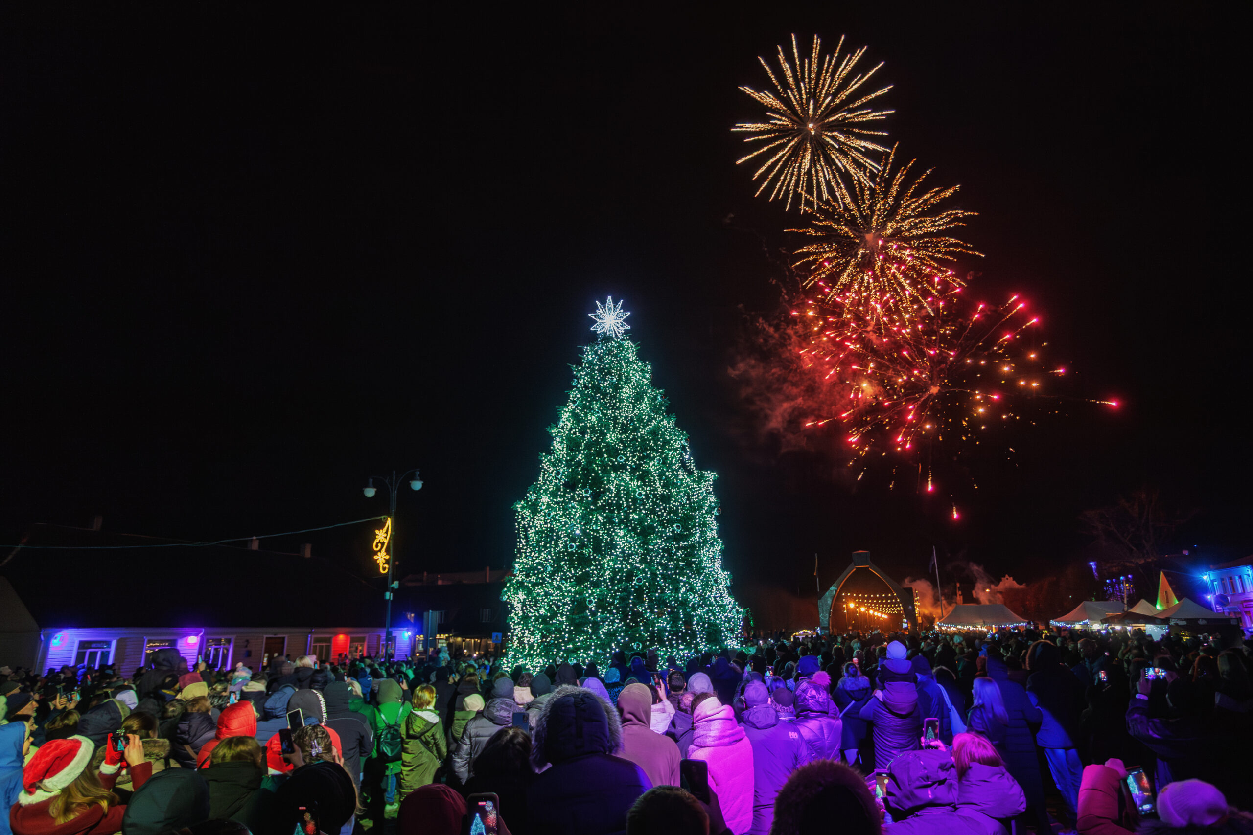 Dangų nušvietė fejerverkai – Rokiškis pasiruošęs Kalėdoms.