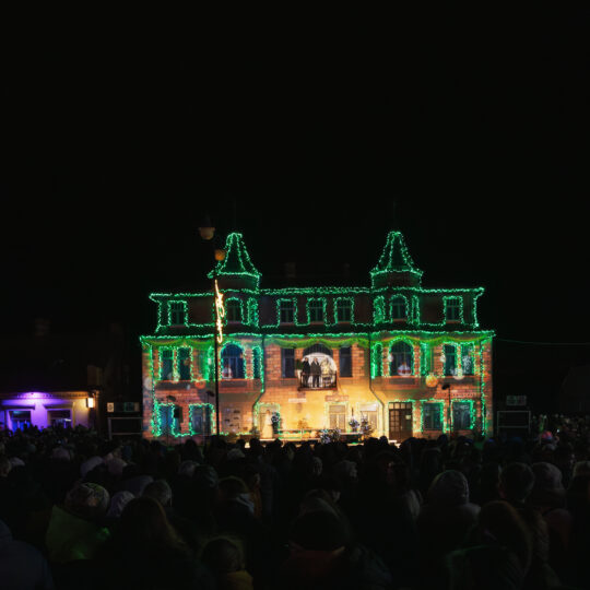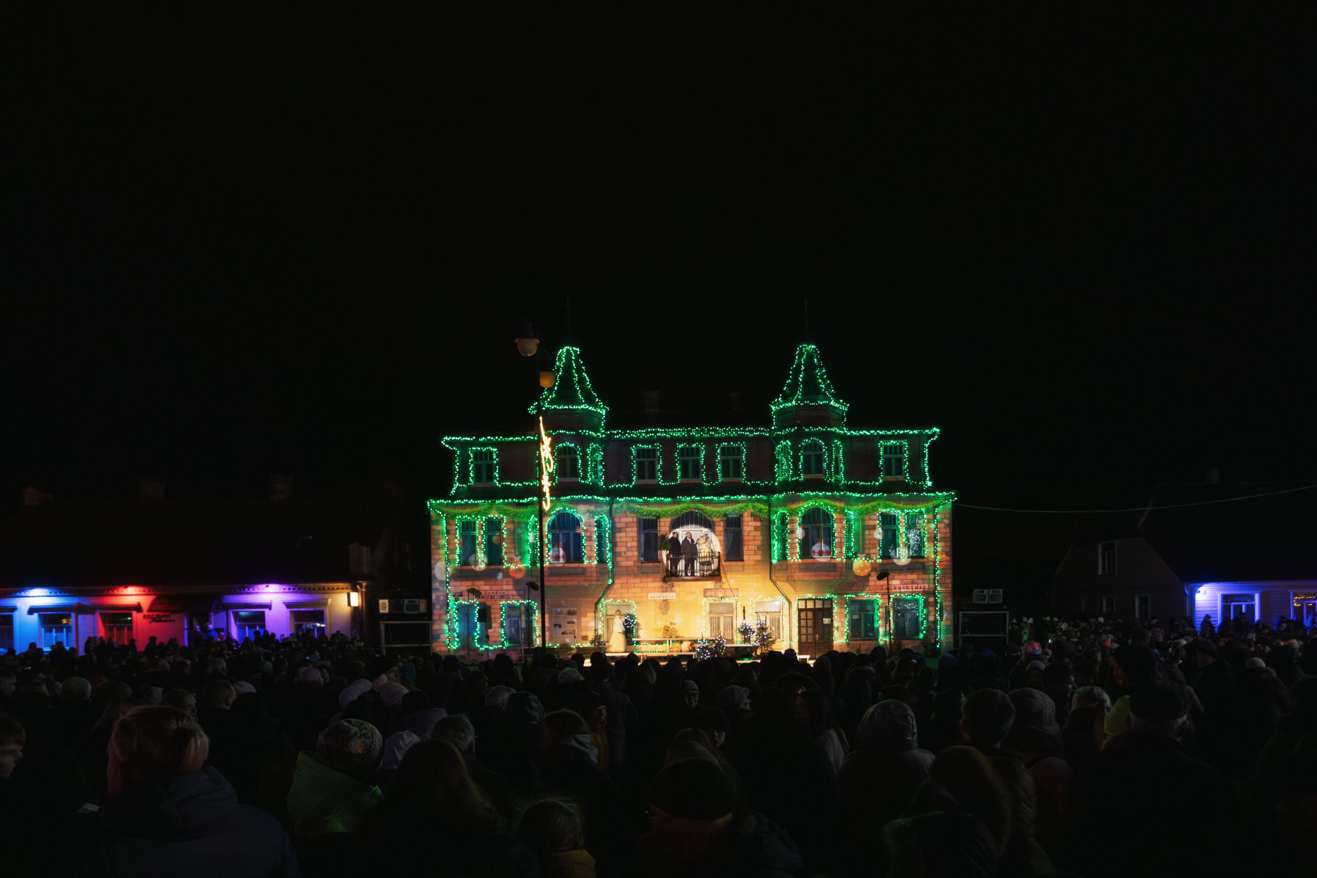 Galėjai nujausti, kad girliandomis papuoštas Nepriklausomybės aikštės namas su bokšteliais nepaliks rokiškėnų abejingų. Jų santykis su šiuo statiniu – ypač jautrus: istoriškai reikšmingas, architektūriškai išskirtinis, dažnai vadinamas gražiausiu mieste, šventinį vakarą jis dar virto kelių aukštų scena.