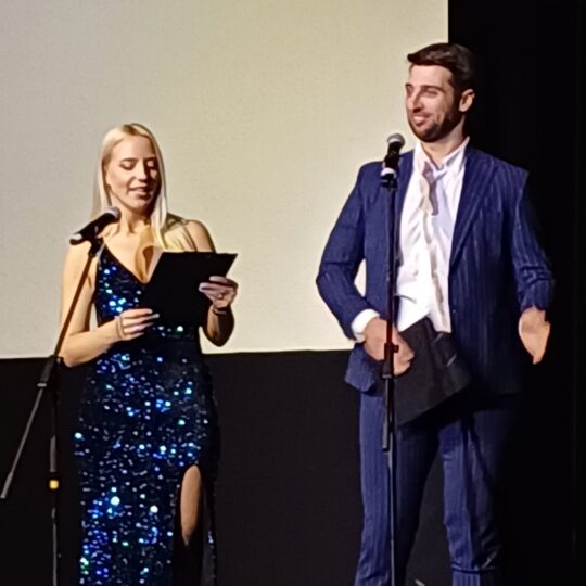 Ką pamatėme atidarymo metu iš naujų festivalio ženklų? Šviečiančią „Geno“ spiralę, prie kurios buvo galima nusifotografuoti fojė, naują festivalio logotipą ir scenoje atidarymo vedėjų duete pirmą kartą šalia jau įprasto Manto Meškuočio – Kultūros centro kultūrinės veiklos ir komunikacijos organizatorę Liną Valotkę.