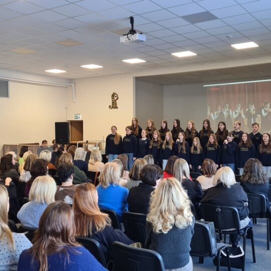 Konferencijos dalyvius daina pasveikino muzikos mokytojos Daivos Rimkienės vadovaujamas Rokiškio Juozo Tūbelio progimnazijos choras ir solistė Radvilė Cegelskaitė, įvairių vokalinių konkursų dalyvė ir laureatė. Pagrindinį pranešimą skaitė emocinės kompetencijos lavinimo trenerė, konsultantė ir lektorė Nomeda Marazienė. Pranešime „Emocinis raštingumas – tylioji lyderystė klasėje: kaip ugdyti gebėjimus, keičiančius pamokos kokybę?“ akcentuota, kad mokytojo emocinė branda ir gebėjimas kurti saugią, pasitikėjimu grįstą aplinką yra viena svarbiausių šiuolaikinės pamokos kokybės sąlygų. Lektorė dalijosi praktiniais įrankiais, padedančiais stiprinti mokinių emocinį sąmoningumą ir atsakomybę už mokymąsi.