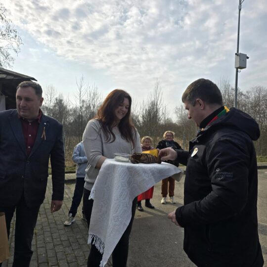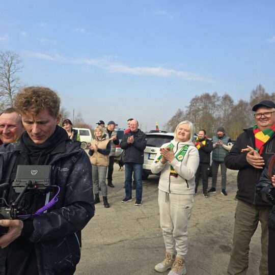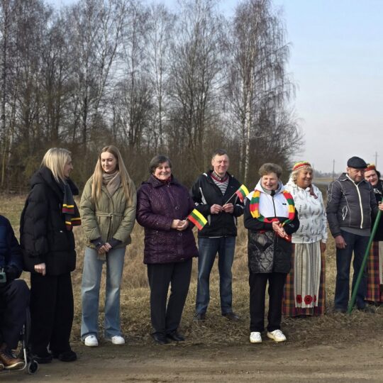 Nuo Juodonių pro garsias iš tolo matomas vėjo jėgaines ir ne tokį matomą, bet ne mažesnį saulės elektrinių parką, pro Duokiškį įvažiavome ir į Utenos rajoną, kur vienoje kryžkelėje vėliavomis ir balionais pasipuošę jau laukė Užpalių seniūnijos ir Vilutiškių bendrijos atstovai.