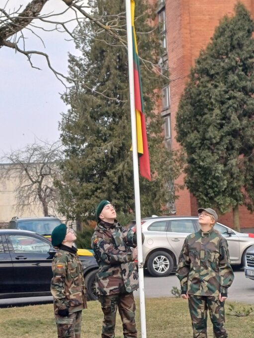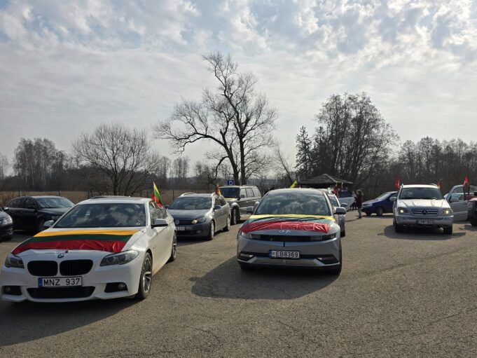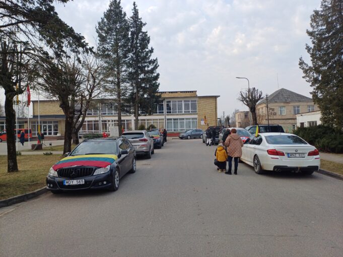 Visiems darniai sugiedojus Lietuvos himną, šauliams pakėlus vėliavą, beliko sėsti į mašinas ir leistis į kelią. Iš aikštės pajudėjo 13 mašinų, kuriose sutilpo geras pusšimtis keliauninkų ir du šuneliai. Pro Maineivas, Čedasus, Panemunį, Pandėlį (sutiktieji neretai pasveikindavo koloną mojuodami rankomis) pasukome link Biržų. Vos pervažiavus rajono ribą, pakelėje su vėliavomis ir muzika, moterys netgi tautiniais kostiumais pasipuošę, jau laukė Papilio seniūnijos Šiekštininkų kaimo bendruomenės nariai. Pasisveikinome su jais, apsikeitėme dovanomis, nusifotografavome, pakvietėme aplankyti Juodupę ir apsisukę pasukome atgal link Pandėlio.