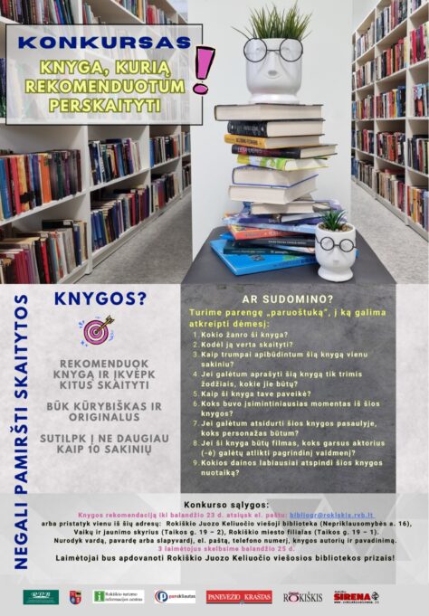 Iki balandžio 23 d. – konkursas „Knyga, kurią rekomenduotum perskaityti“.