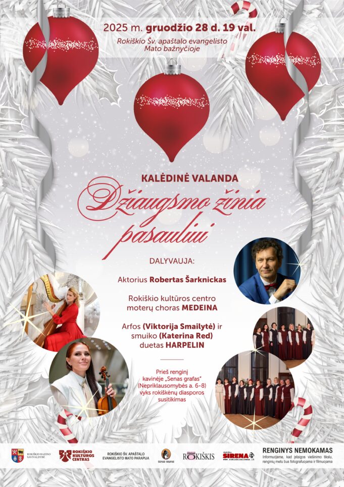 Kalėdiniu laikotarpiu, kai aplinkui plevena skubėjimas ir kasdienybės šurmulys, Kalėdinė valanda DŽIAUGSMO ŽINIA PASAULIUI kviečia sustoti. Bažnyčios tyloje atsiveria erdvė ramybei – čia muzika tampa švelniu kvietimu girdėti daugiau nei garsus. Ji leidžia prisiliesti prie vidinės tylos, primena tikrąją Kalėdų šviesą ir širdies ramybę.