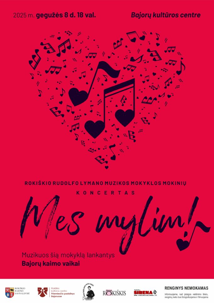 Gegužės 8 d. 18 val. Bajorų kultūros centre koncertas MES MYLIM!
