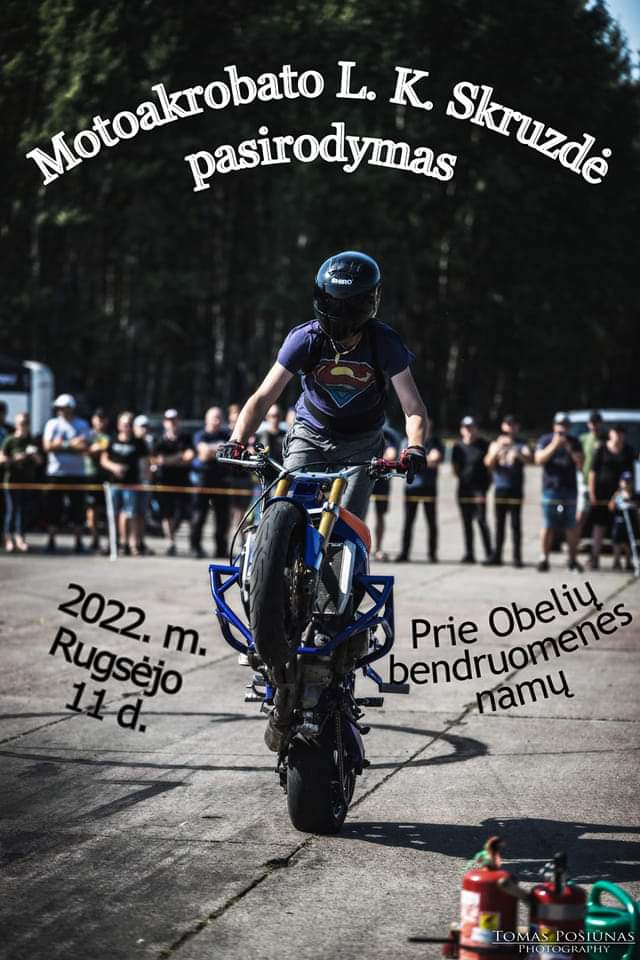 Na o 15.30 val, taip pat prie Obelių bendruomenės namų išvysime motoakrobato L.K.Skruzdė pasirodymą!