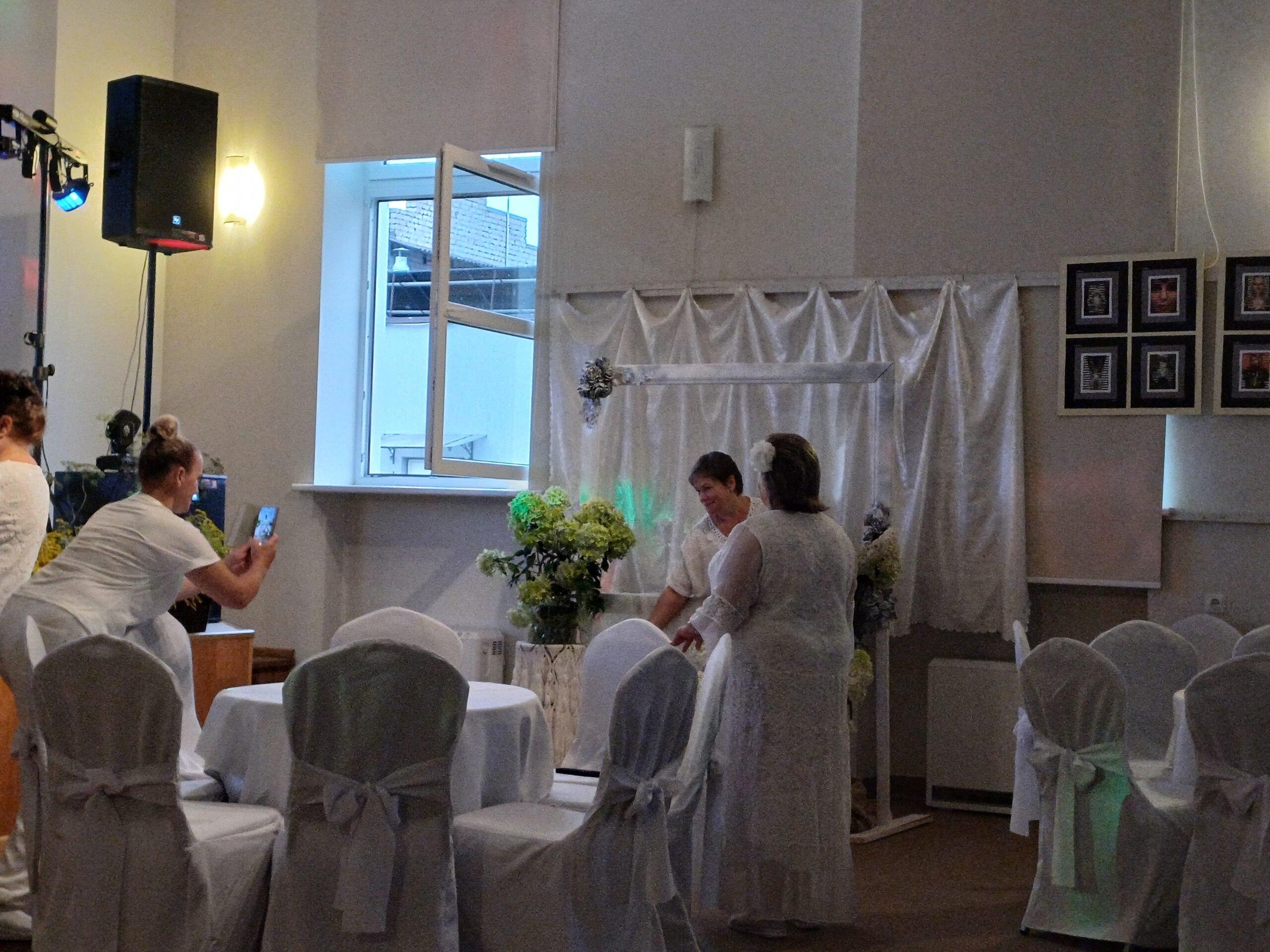 Po spektaklio išėjus į lauką jau tikrai reikėjo skėčių, ir vakarinė pakermošio programa persikėlė į UDC salę. Baltasis vakaras ir gegužinė/šokiai, kad ir mažiau svečių sulaukė negu jų būtų buvę lauke, bet linksmybių, šokių ir dainų netrūko.