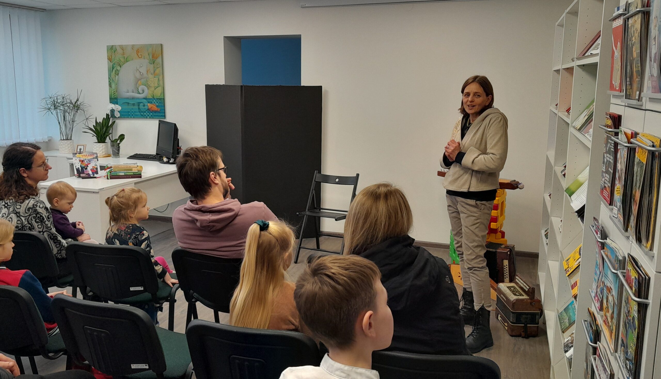 Susitikimą pradėjo Rokiškio Rudolfo Lymano muzikos mokyklos mažieji muzikantai (jų mokytoja Laima Bieliūnienė). Išgirdome autorines Laimono Adomaičio ir Mildos Čeponytės (jai padėjo Adriana Matukaitė) dainas. Mokinių sukurti dainų tekstai apie katinėlį Juodčkį, devyniaragį elnią, jiems pritaikytos melodijos, kuriose kiekviena nata atspindėjo meilę muzikai, sukūrė jaukią atmosferą.