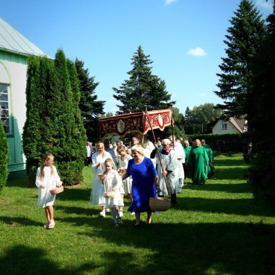 Na, o patys Grūšninės atlaidai ir kermošius man pasirodė stebėtinai panašūs į tą jubiliejų mininčią bažnyčią. Puošnūs, sausakimšoje bažnyčioje, į kurią, kaip senais laikais netilpo visi norintys, nors dabar mišios joje aukojamos tik kas antrą sekmadienį, pagerbti paties vyskupo Lino Vodopjanovo OFM, su gražiomis Rokiškio Šv. Mato evangelisto bažnyčios vargonininko Justino Šapolos ir jo vadovaujamo choro giesmėmis, Juditos Leitaitės ir jos dukters smuikininkės Paulinos dainomis bei giesmėmis, kurias pabaigoje dainavo visa bažnyčia.