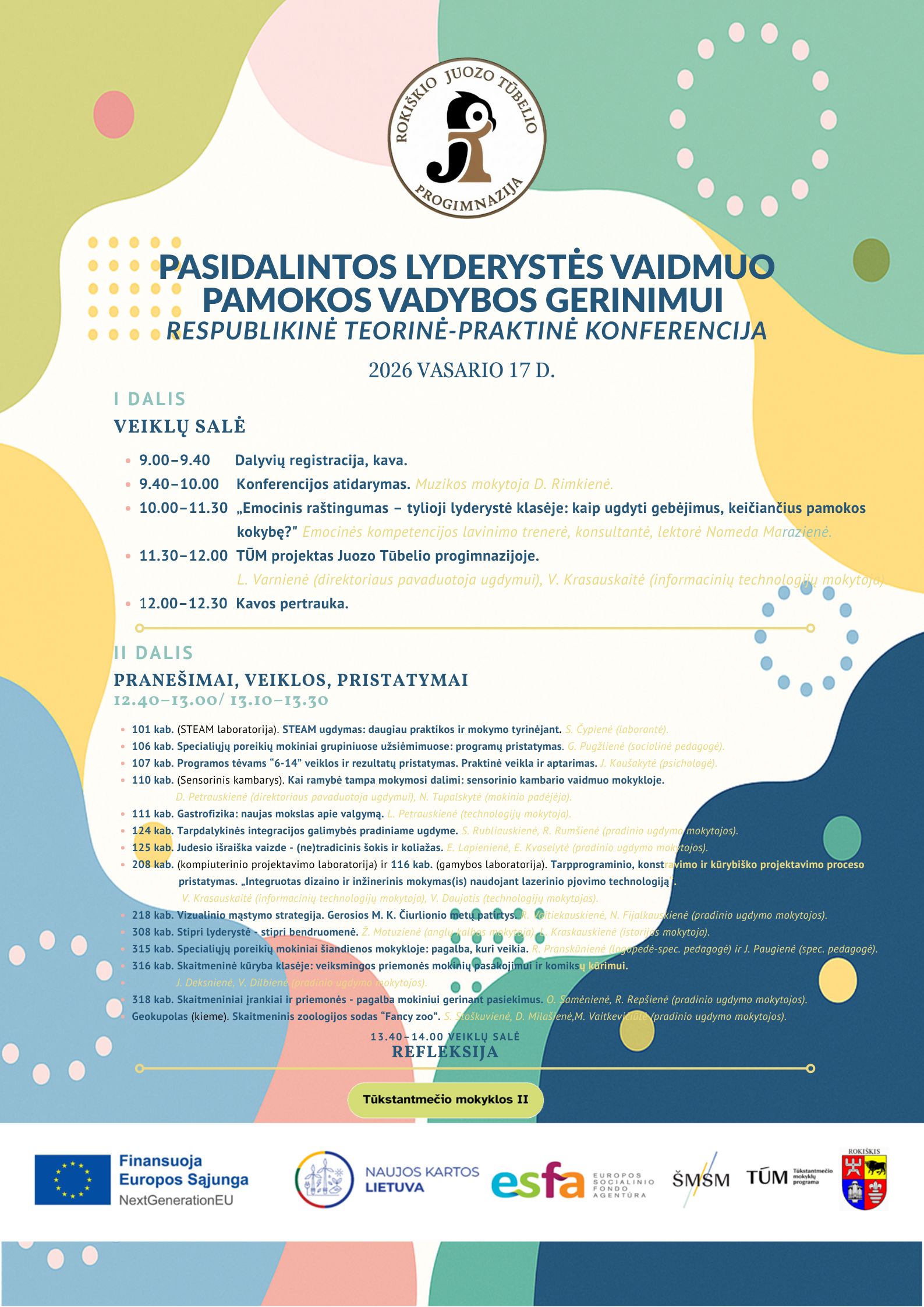 Vasario 17 d. Rokiškio Juozo Tūbelio progimnazijoje vyks respublikinė teorinė-praktinė konferencija „Pasidalintos lyderystės vaidmuo pamokos vadybos gerinimui“.