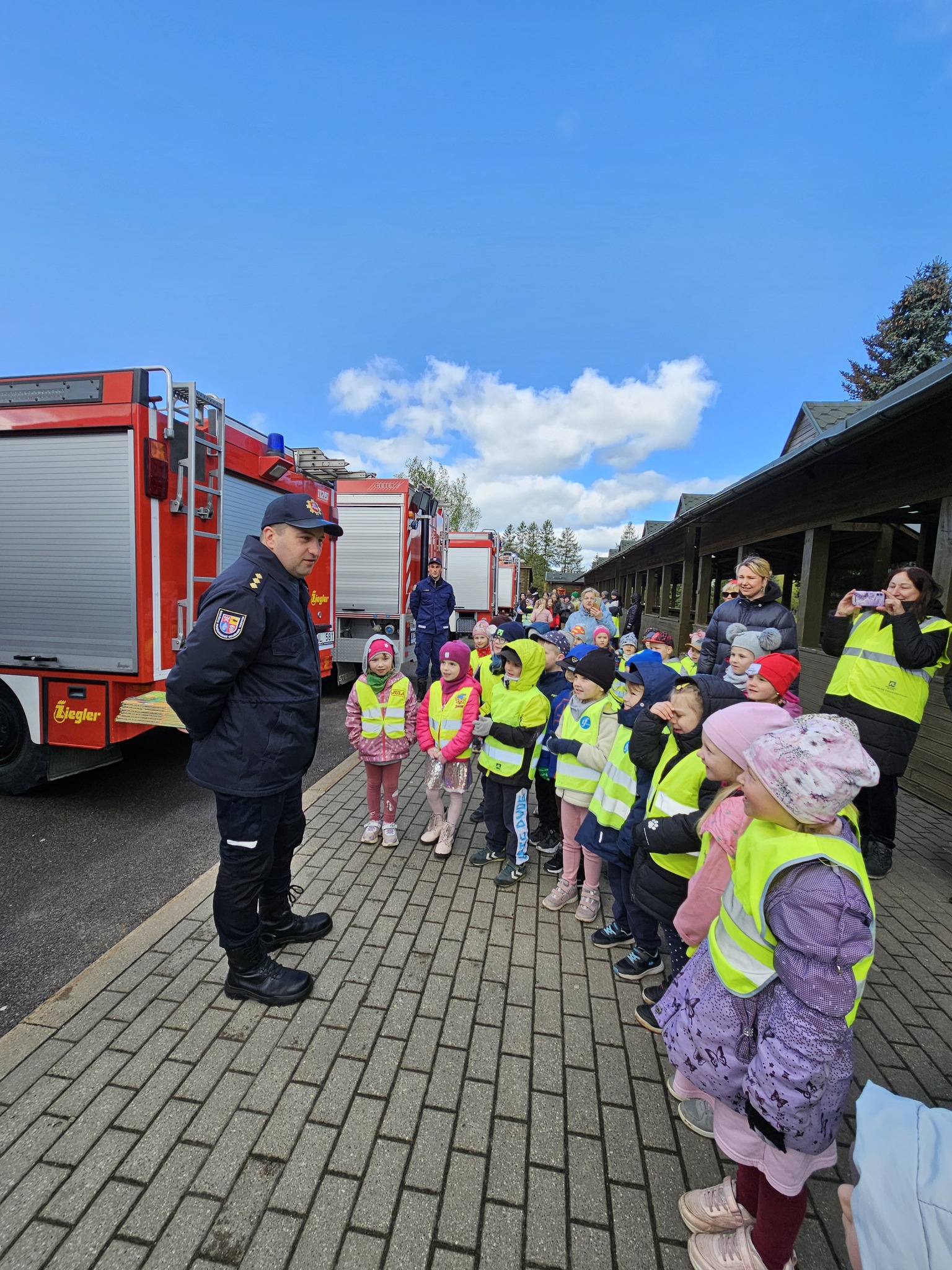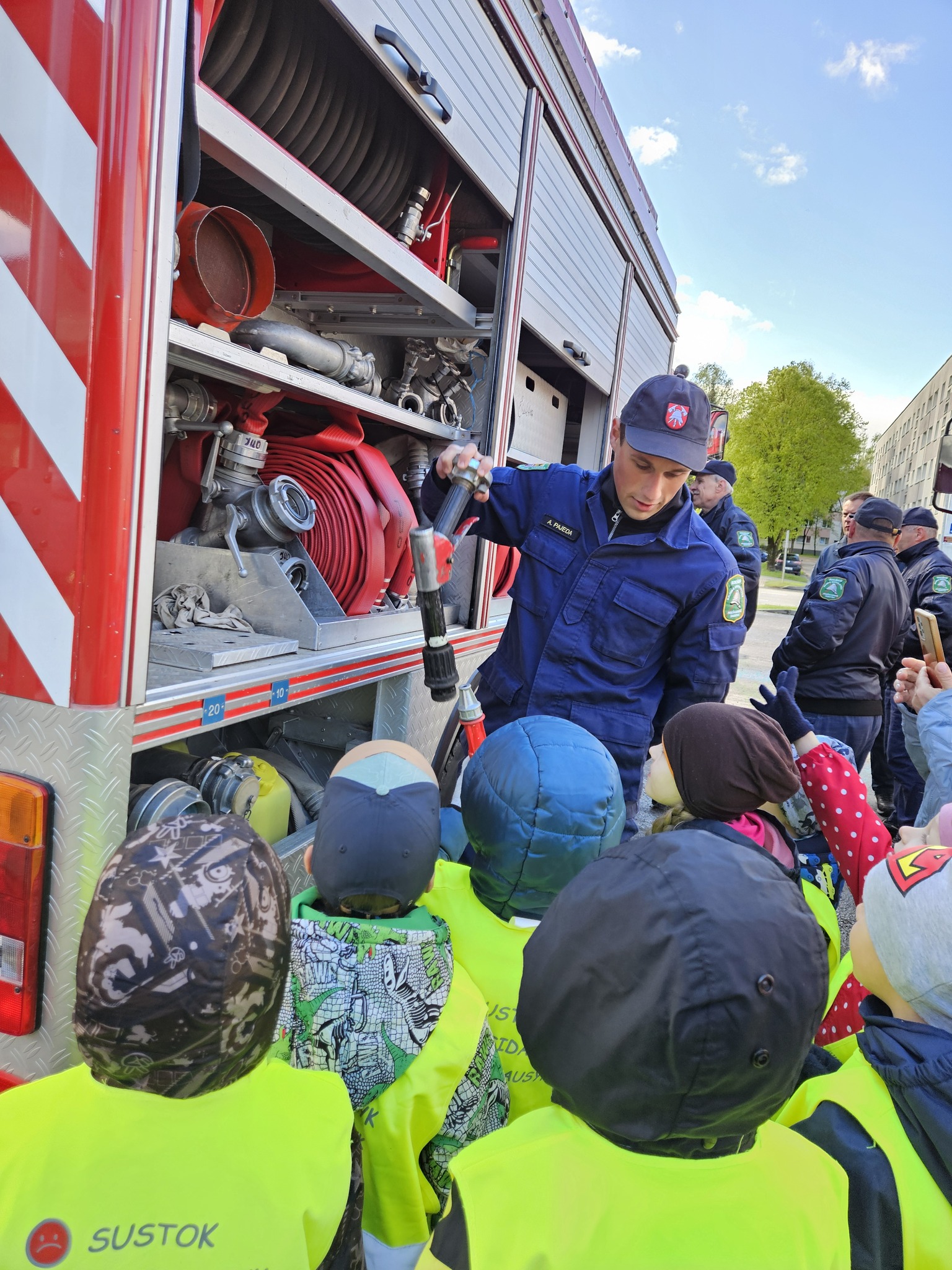 Pirmiausia turgaus aikštėje prie daugiabučių sukvietė pačius mažiausius rokiškėnus – darželių auklėtinius. Jiems ugniagesiai pademonstravo gaisrinius automobilius, techniką, įrangą ir uždavinėjo svarbius klausimus, pavyzdžiui, kokiu numeriu skambinti, kilus gaisrus, ką daryti, jeigu įsiplieskia ugnis ir t.t. Teisingai pirmiesiems atsakiusiems dovanojo knygeles, pakabukus, saldainius.