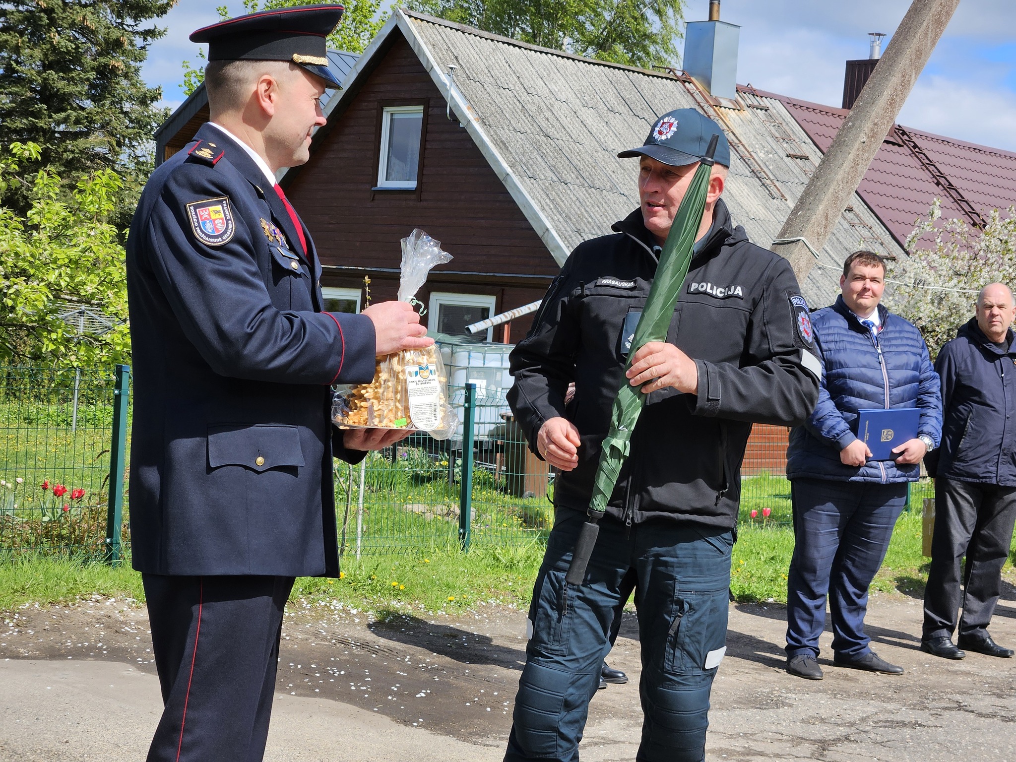 Šv. Florijono dienos proga Valstybinės priešgaisrinės gelbėjimo tarnybos pasižymėjimo ženklu „Už garbingą tarnybą“ D.Kunigėlis apdovanojo Vidaus tarnybos puskarininkį Darių Skvarnavičių, tarnaujantį jau 25-erius metus, bei tarnybos 20-metį švenčiantį Vidaus tarnybos puskarininkį Nerijų Kriukelį. Padėką įteikė Vidaus tarnybos leitenantui Robertui Pajedai, o skatinamąją vardinę dovaną – Jūratei Kralikaitei.
