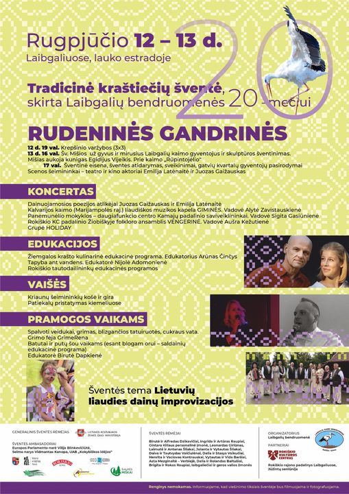 Rugpjūčio 12 – 13 d. Laibgaliuose, lauko estradoje, tradicinė kraštiečių šventė, skirta Laibgalių bendruomenės 20–mečiui.