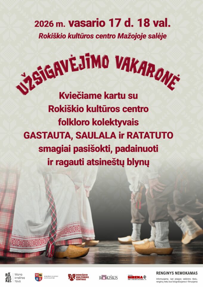 Kviečiame kartu su Rokiškio kultūros centro folkloro kolektyvais GASTAUTA, SAULALA ir RATATUTO smagiai pasišokti, padainuoti ir ragauti atsineštų blynų