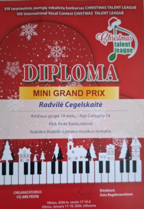 Sausio 17, 18 dienomis Vilniaus ROYAL THEATRE vyko VIII tarptautinis vokalo konkursas „CHRISTMAS TALENT LEAGUE 2026“.