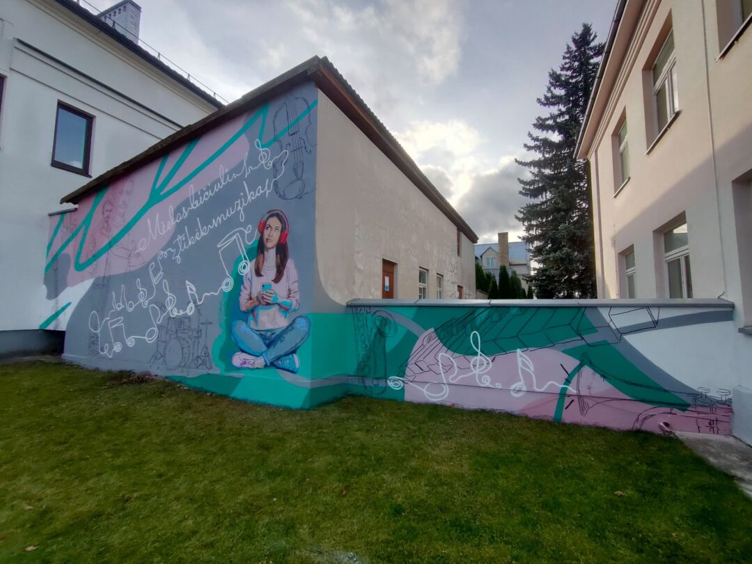 Nors tarptautinis vargonų muzikos festivalis jau baigėsi, dalis jo dvasios visam laikui išliks ant muzikos mokyklos sienos. Piešinys – Rokiškio kultūros centro idėja 22-ojo tarptautinio vargonų muzikos festivalio, skirto čekų muzikui, pedagogui, vargonininkui Rudolfui Lymanui, proga.
