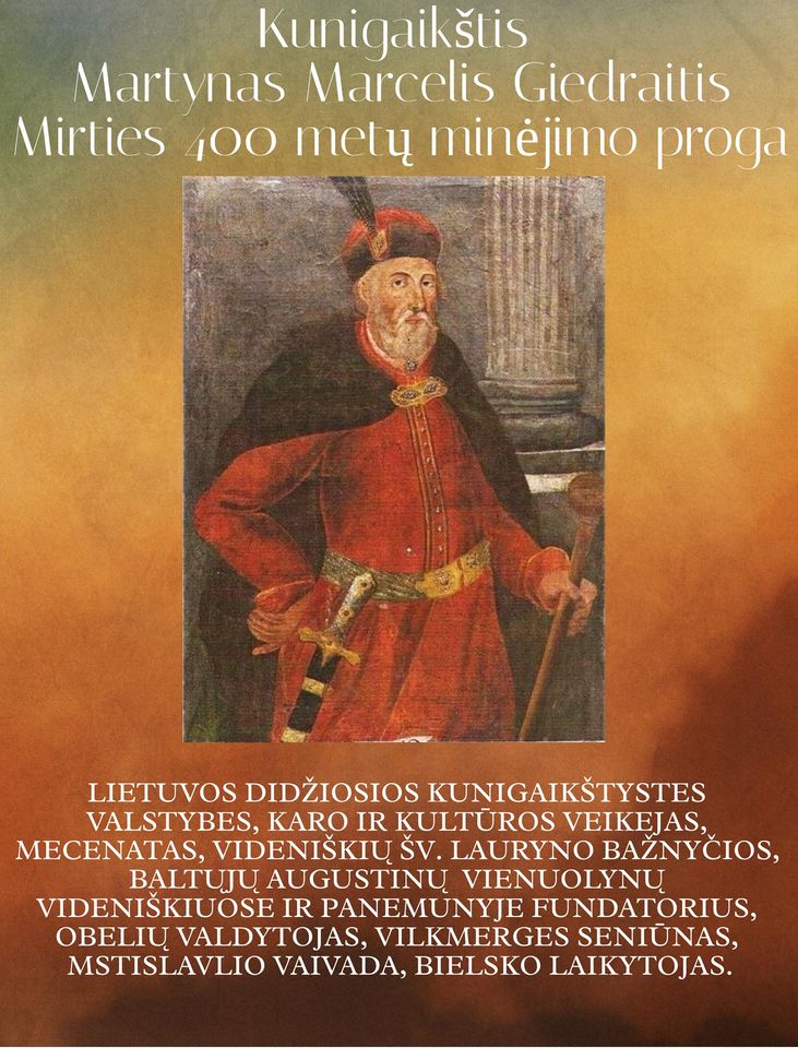 Tačiau didžiausiu kunigaikščių Giedraičių giminės pasididžiavimu laikomas Martyno Marcelijaus brolis palaimintasis Mykolas Giedraitis. „Tai buvo stipriausias akstinas pastatyti atgailos kanauninkų (baltųjų augustinų) vienuolynus Panemunyje (Rokiškio r.) ir Videniškiuose (Molėtų r.). Tai sietina su naujos mūrinės bažnyčios projekto pasirinkimu ir statymu Videniškiuose, taip pat jo intencija buvo rekonstruota ir perstatyta Baltadvario pilis“, – teigia Rimantas.
