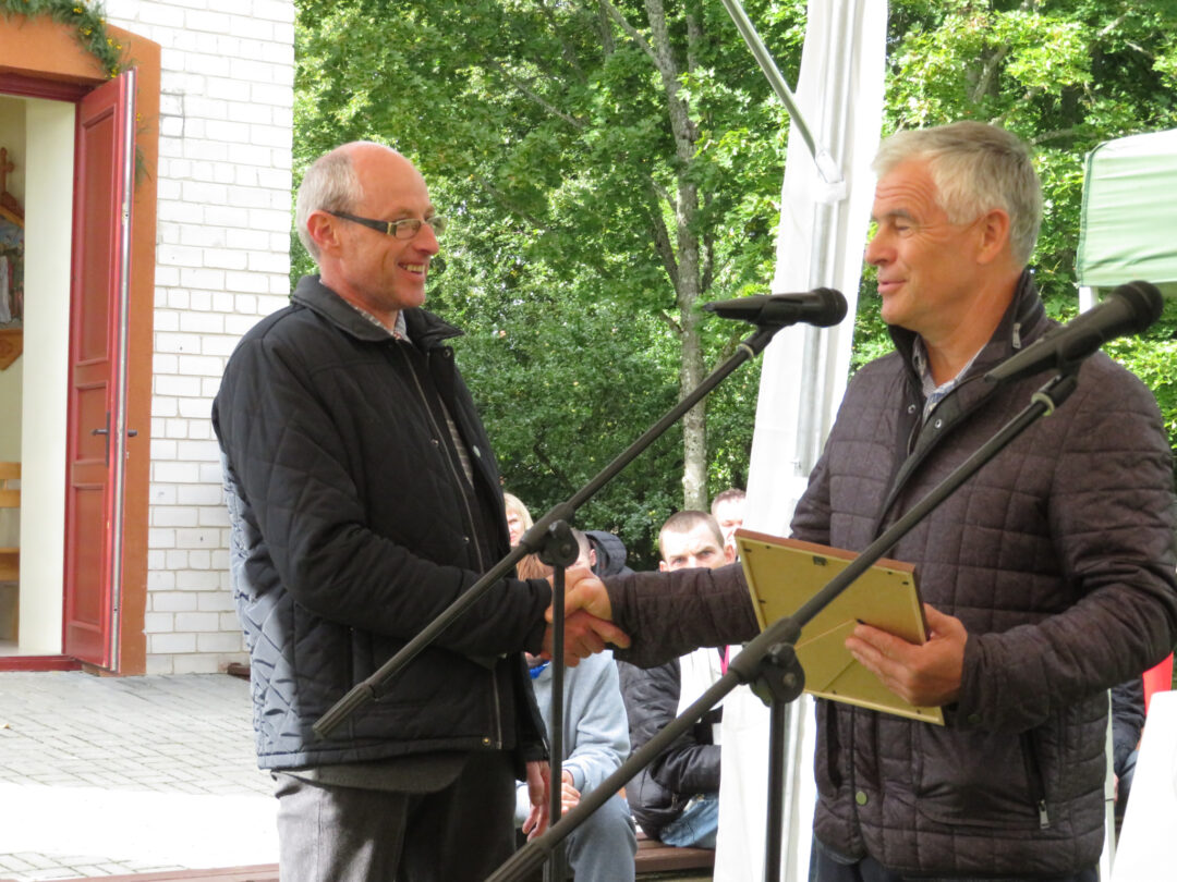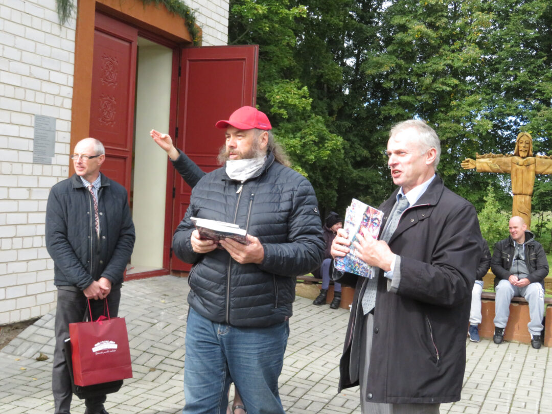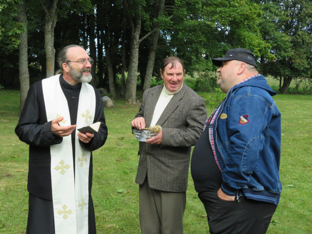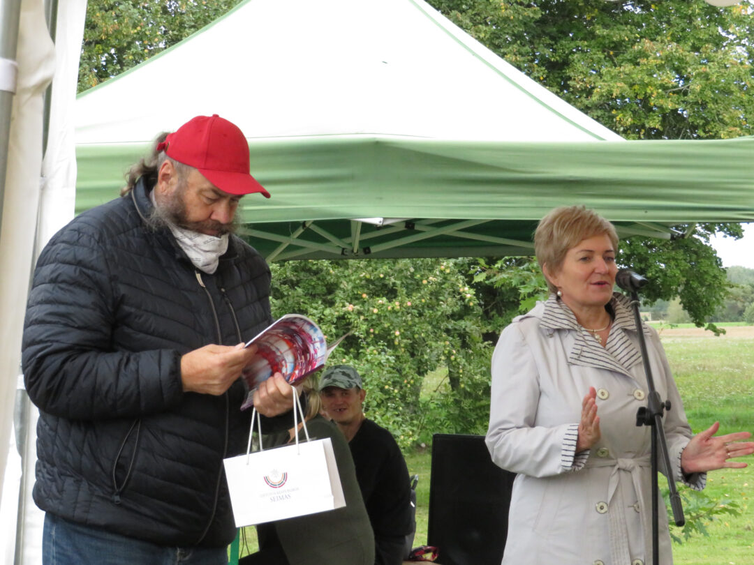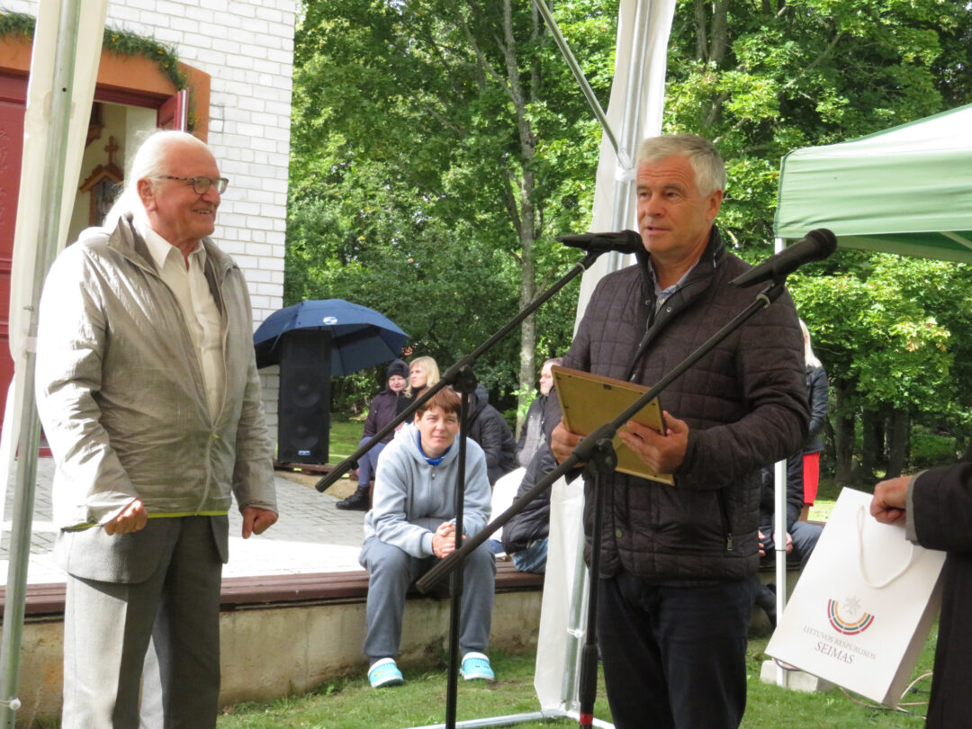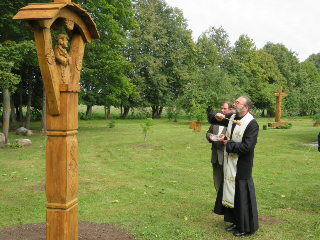 Per plenero uždarymą skulptūrą palaimino ir pašventino Obelių Šv. Onos parapijos klebonas Laimonas Nedveckas. Švęsto vandens dvasininkas nepagailėjo ir pačiam autoriui – mojuodamas šlakstykle, šypsodamasis, dosniai bėrė lašus ant tvirto stoto menininko.