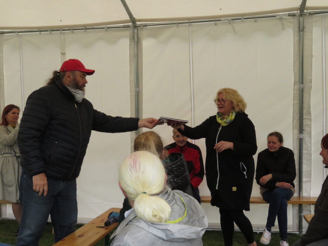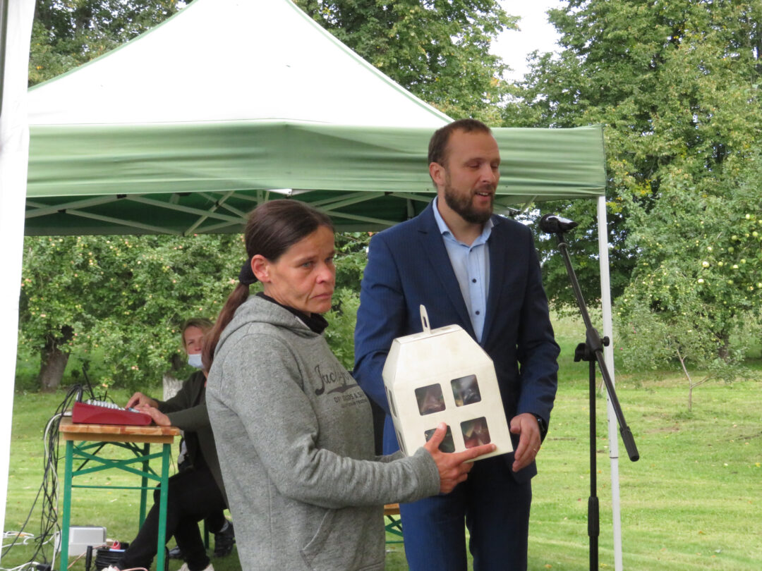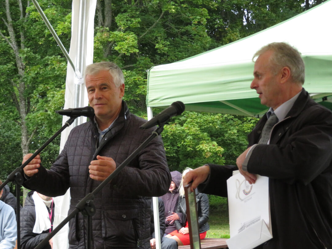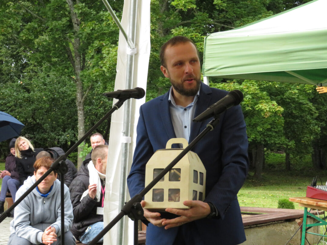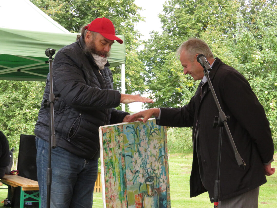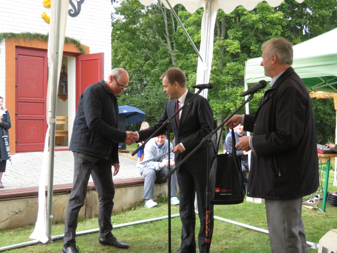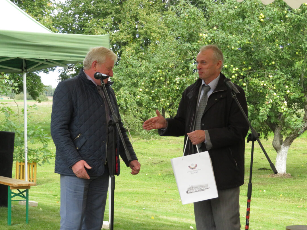 Per plenero uždarymą skulptūrą palaimino ir pašventino Obelių Šv. Onos parapijos klebonas Laimonas Nedveckas. Švęsto vandens dvasininkas nepagailėjo ir pačiam autoriui – mojuodamas šlakstykle, šypsodamasis, dosniai bėrė lašus ant tvirto stoto menininko.