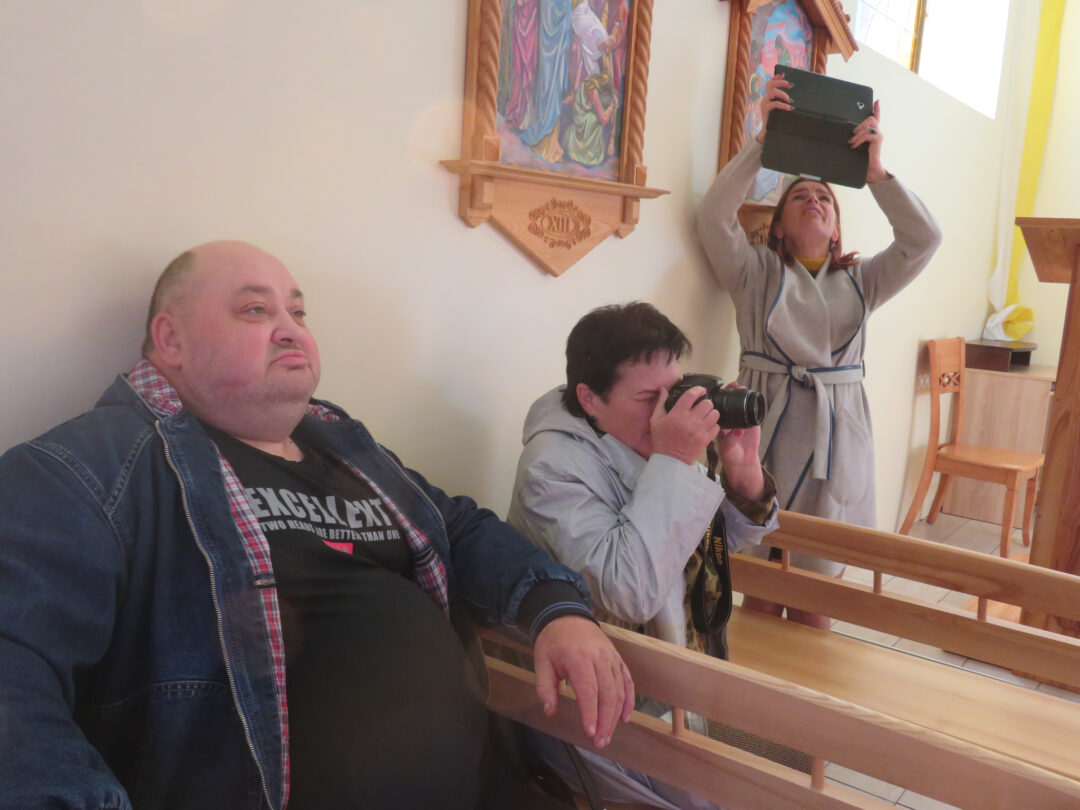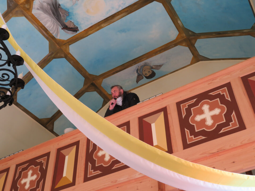 Menininkai sukosi aplinkui koplyčią ir joje