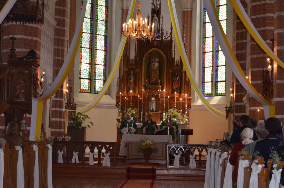 Prieš šv. Mišias procesija nuėjo į kleboniją sutikti garbaus jubiliato ir nuvedė jį į bažnyčią. Procesija atrodžiusi taip: priekyje buvo nešamas kryžius, iš paskos – vėliavos ir liktarnos, po jų ėję kunigai, o 12 mergaičių tautiškais rūbais barstė gėles.