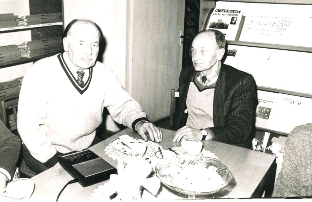 Atvažiuodavo ir tėčio draugų, buvusių mokinių iš Vilniaus. Atsimenu, mama jau buvo mirusi, iš Panevėžio atvyko tėčio geri draugai režisierius Miltinis su Blėdžiu. Tai jis laikraštį paklojo, savo naminio vyno padėjo – ir vaišės. Jo labai geras draugas Rokiškyje, mokytojas Vajega net pasipiktino tokiomis vaišėmis garbingiems svečiams, todėl atnešė prabangesnio gėrimo, neatsimenu, kokio. Bet toks elgesys – labai keliuotiškas, jam buvo nė motais, kas ką pasakys ar pagalvos, jis elgėsi pagal aukštesnius dvasinius standartus, o kas materialu – jam nebuvo svarbu.
