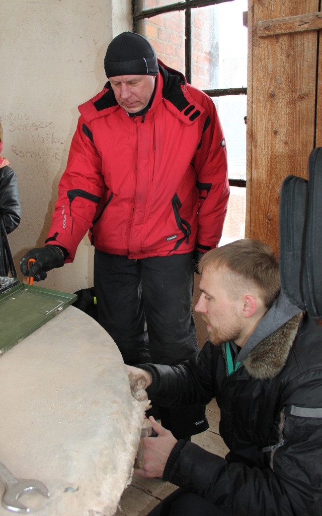 „Vytautas labai norėjo viską atlikti per vieną dieną, todėl dviese dirbome iki vėlumos. Buvo ir kuriozų – mums besidarbuojant, atlėkė zakristijonas. Sako, tuoj Mišios, reikia skambinti varpu. O tas varpas mums virš galvos kabo. Ką darysi, su Vytautu užsikimšome ausis ir pralaukėme, kol skambino“, – apie darbo tempą pasakojo R. Sirgėdas.