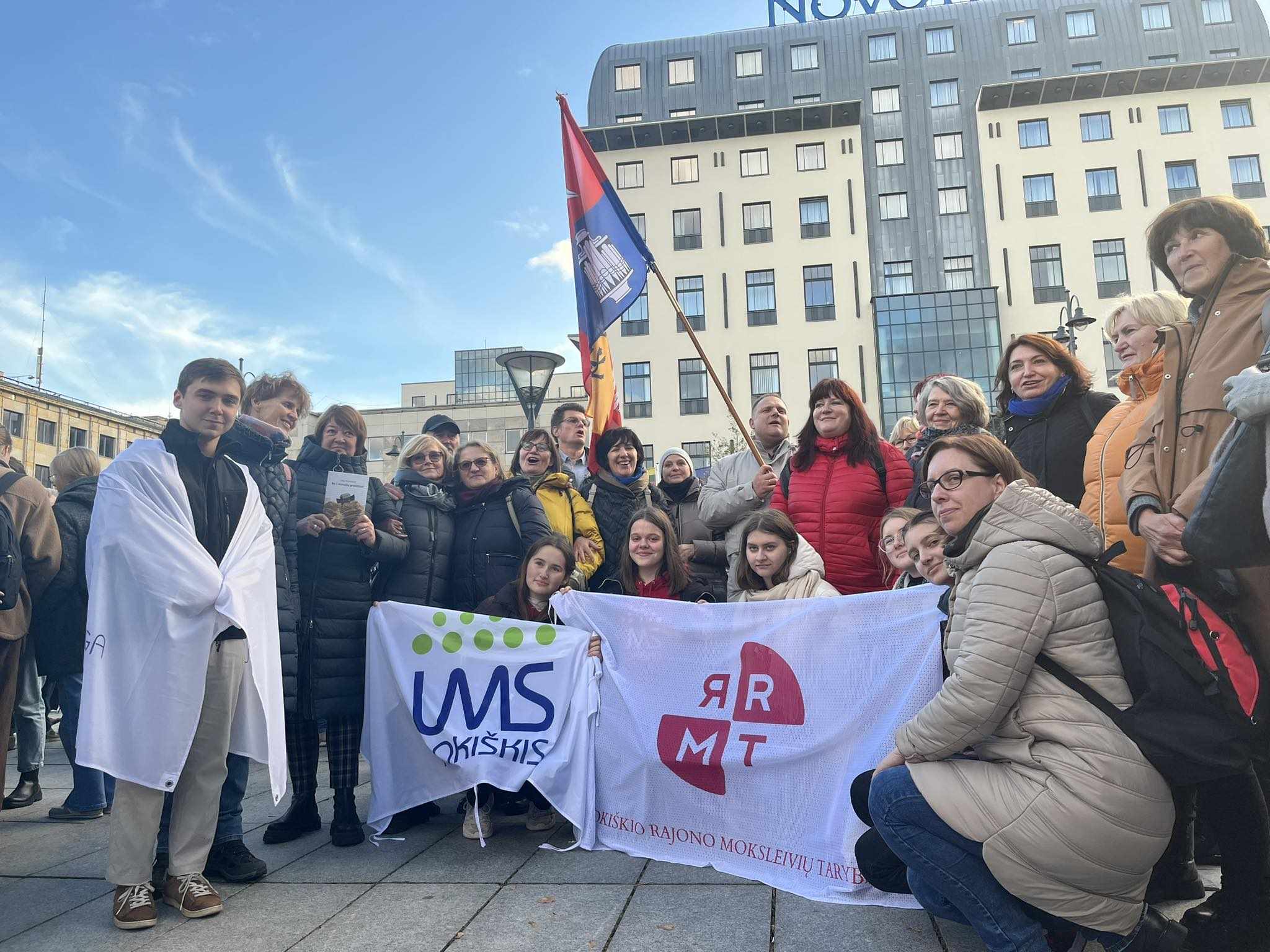 Mokytojams kartu su moksleiviais įveikus maršrutą Klaidpėda–Vilnius, V. Kudirkos aikštėje Vilniuje ketvirtadienį buvo surengtas mitingas.