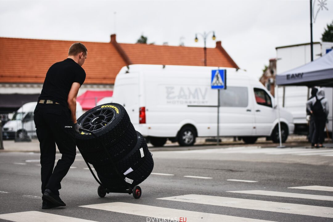 Jau nuo trečiadienio ryto miesto gatvėse ūžė sunkvežimiai su ralio automobiliais, o į štabą rinkosi varžybų organizatoriai ir sportininkai.