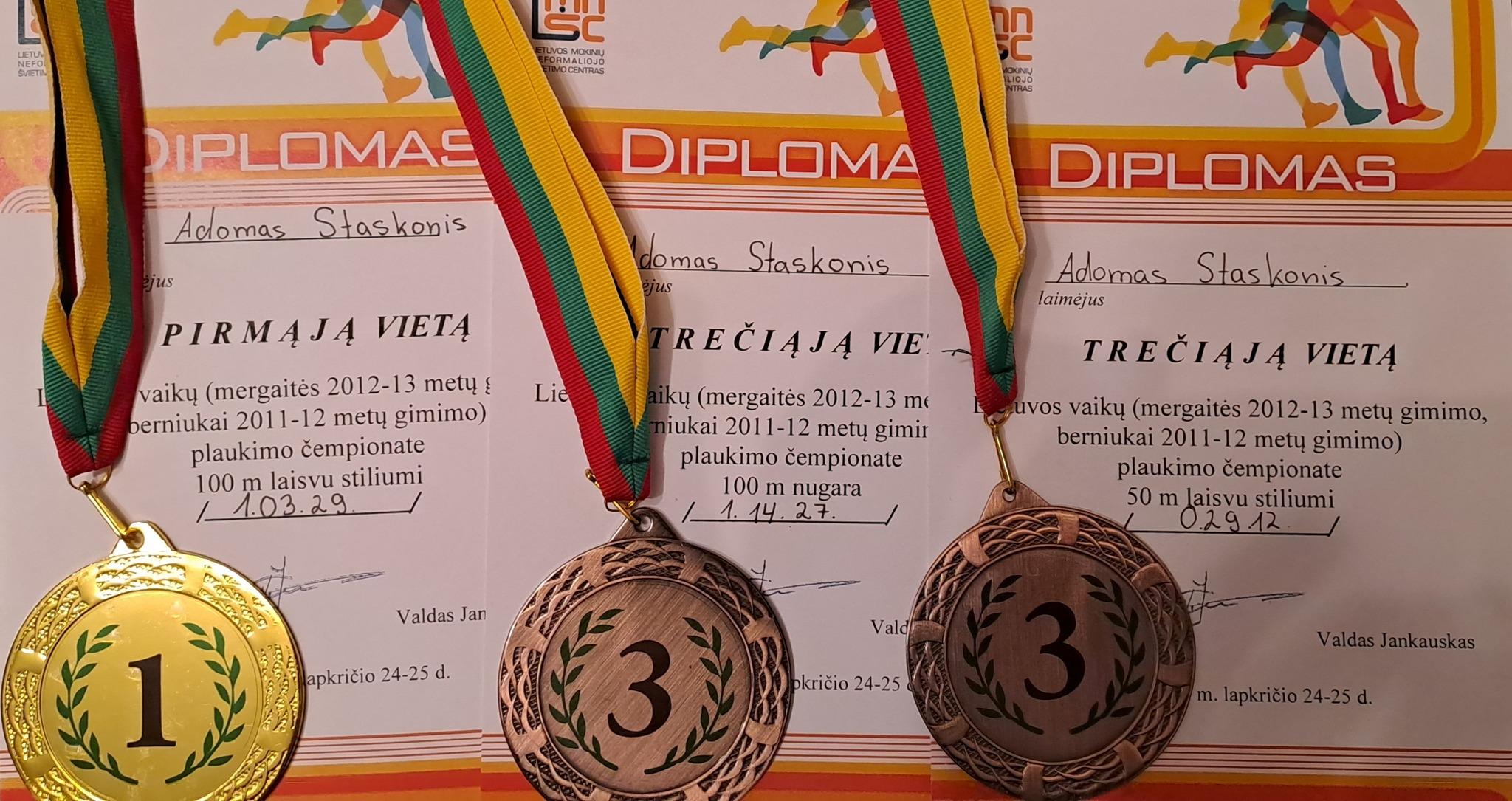 Adomas Staskonis Lietuvos čempiono titulą pelnė greičiausiai atplaukęs 100 m laisvuoju stiliumi (1:03.29 min.), taip pat iškovojo du trečiosios vietos medalius – 100 m nugara ir 50 m laisvuoju stiliumi.