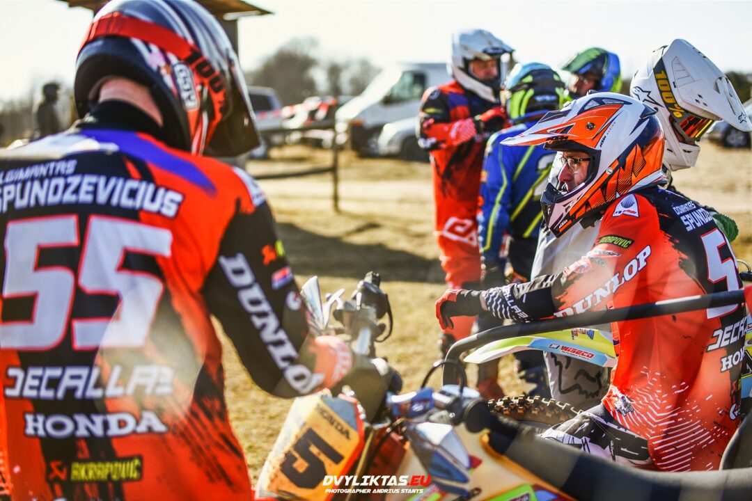 Domantas: – Pirmą kartą išvažiavus į trasa, plačią šypseną greit pakeitė lengvas išgąstis ir nuovargis. Pati pradžia labai sunki: neaišku ką daryti, kaip daryti, fiziškai greit privargsti ir galvoji tik apie tai, kaip neiškristi iš priekabos. Kiek buvau matęs važiuojančius iš šalies, niekada nemaniau, kad reikia tiek daug darbo. Pirmosios varžybos su motociklu įvyko praėjusių metų pavasarį, dalyvavome pirmajame Lietuvos čempionato etape Pakruojyje. Patyrėme labai daug streso ir baimės. Tas varžybas puikiai atsimename abu ir turbūt atsiminsime dar ilgai.
