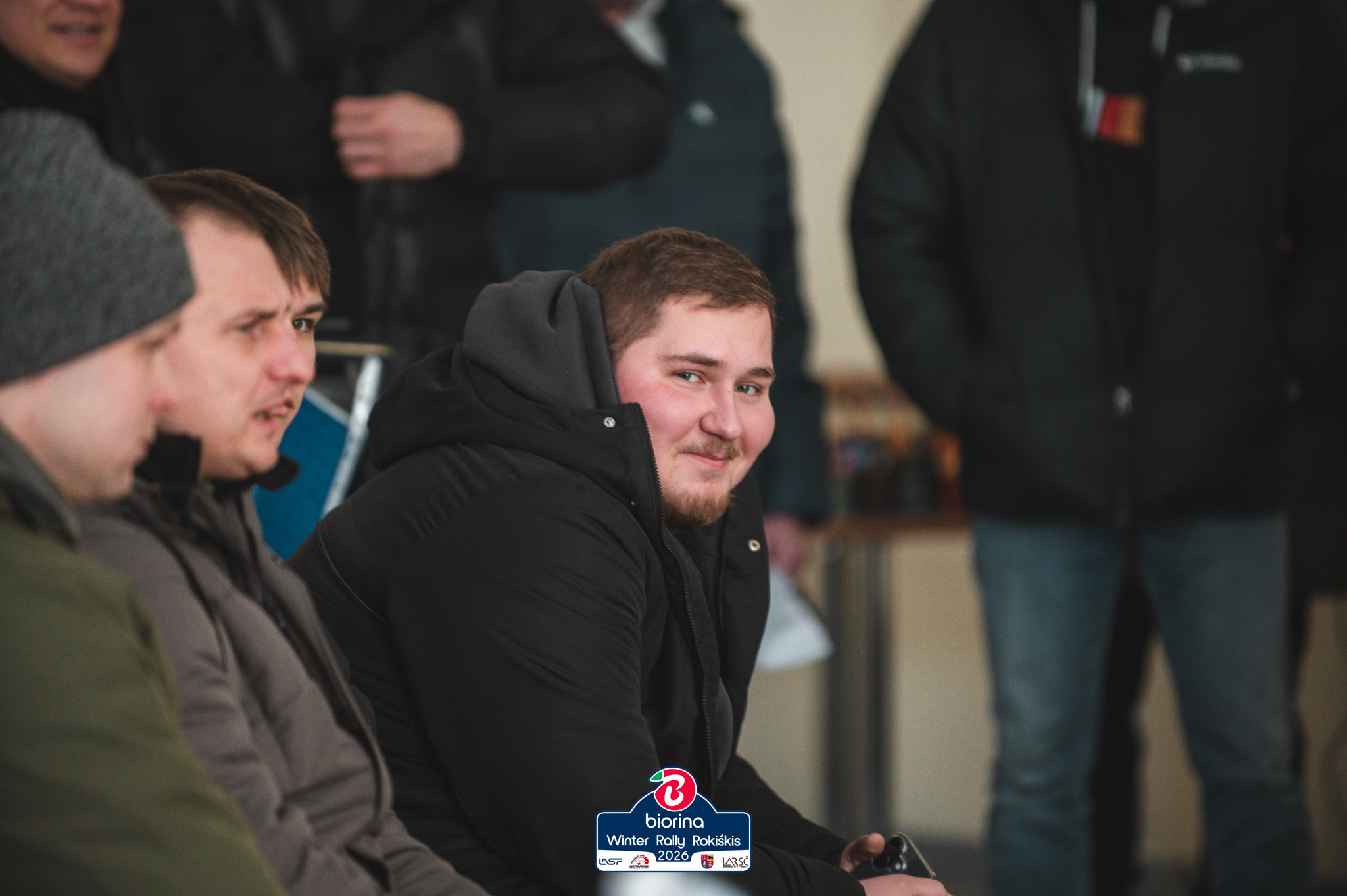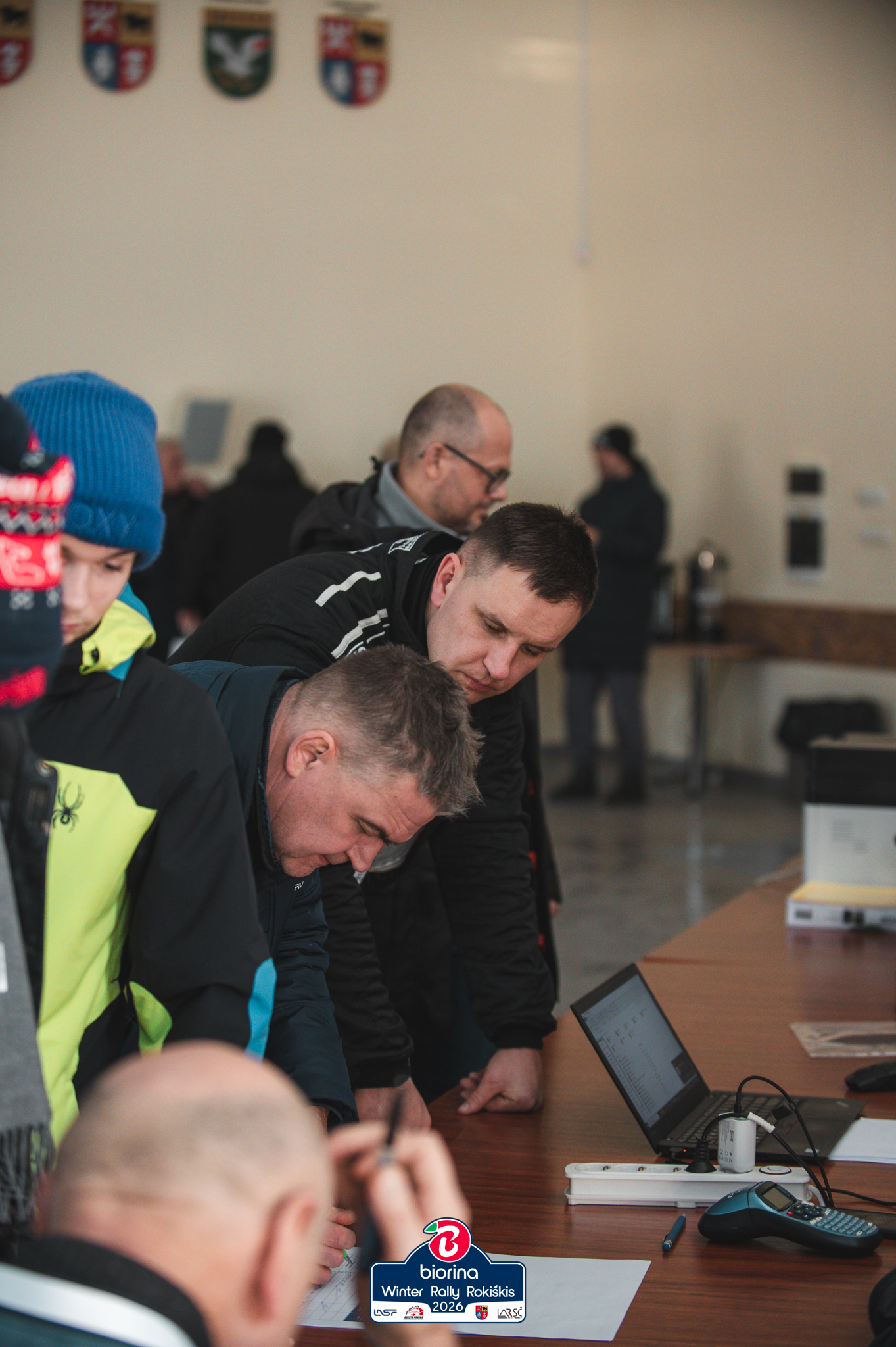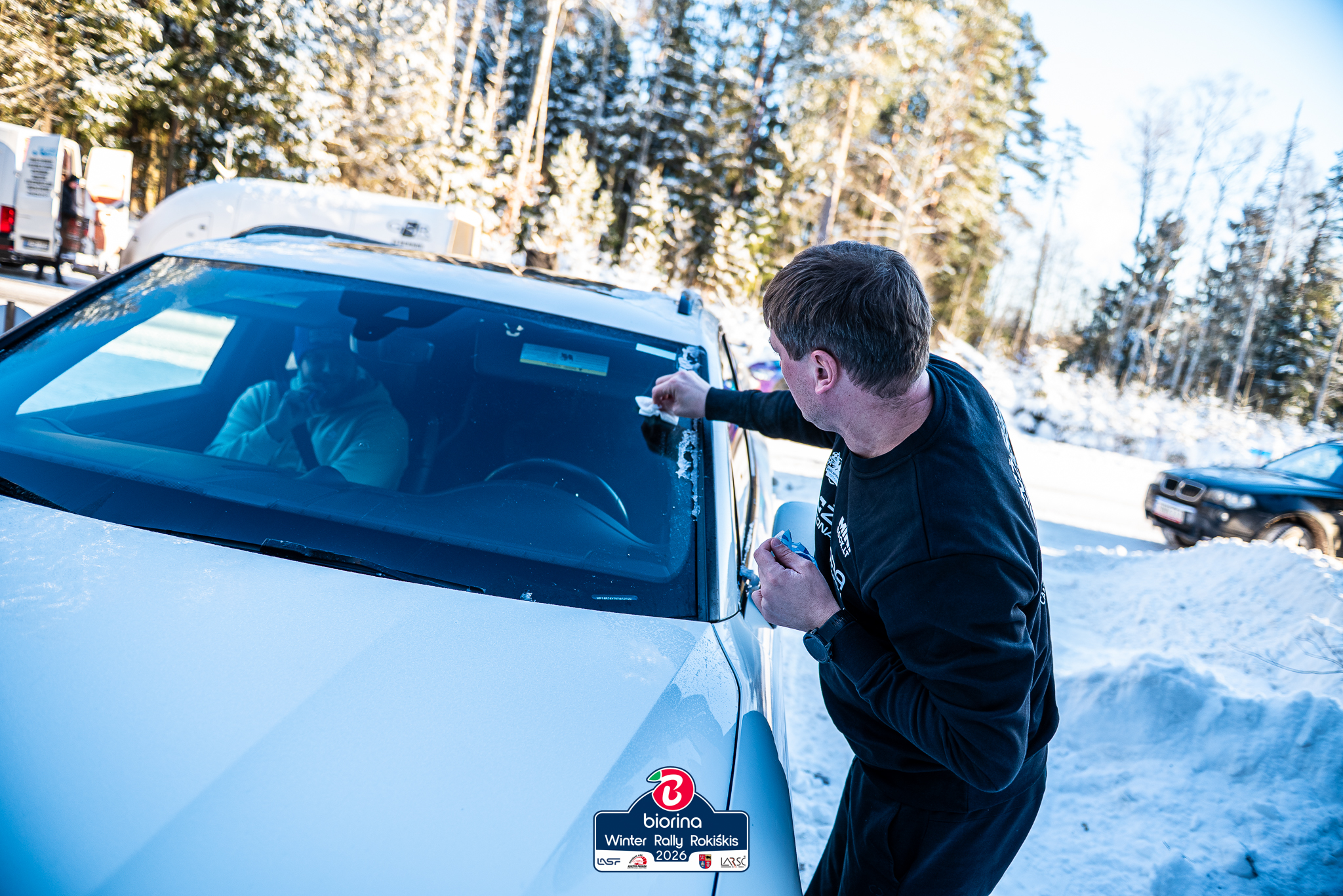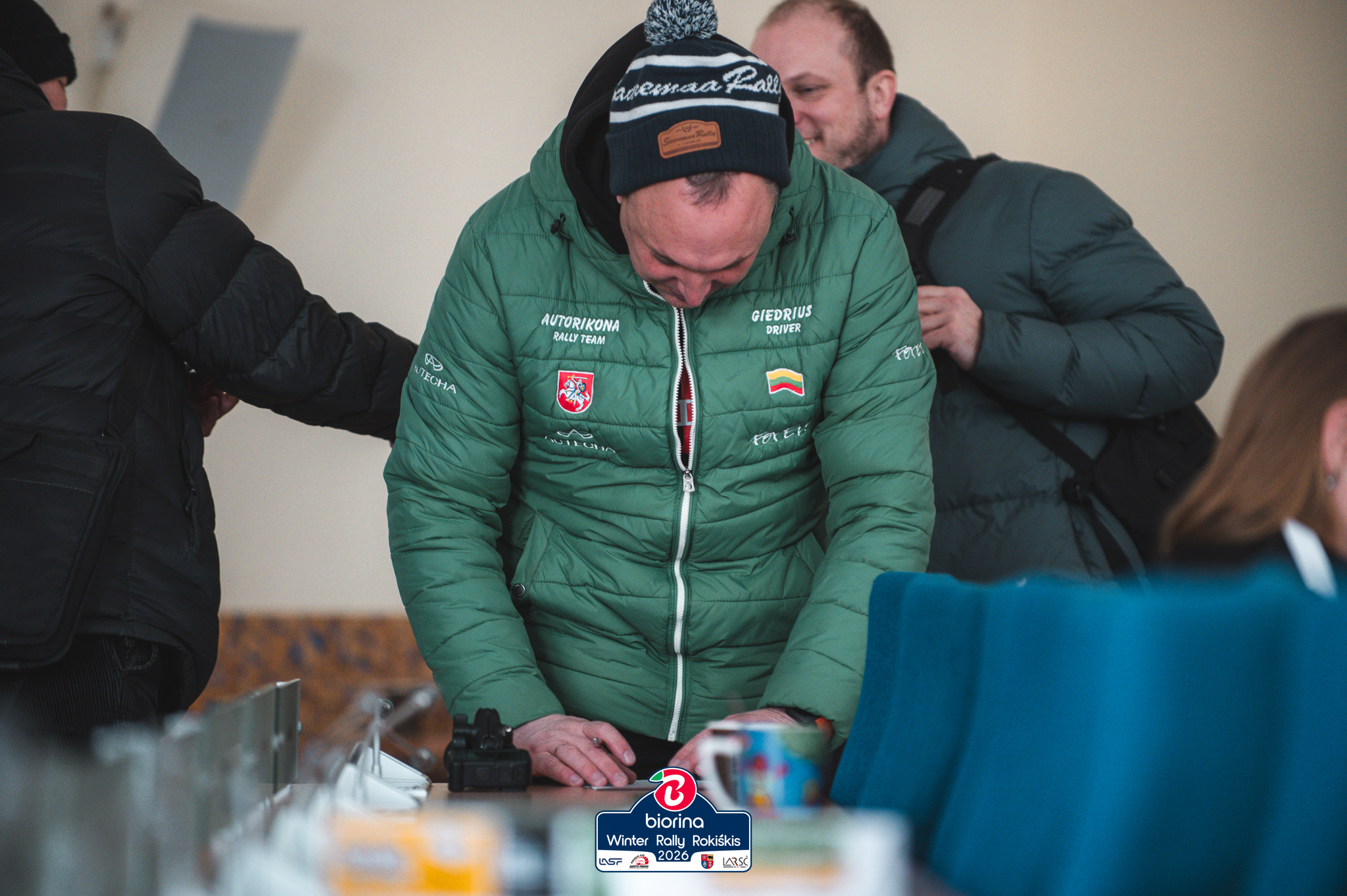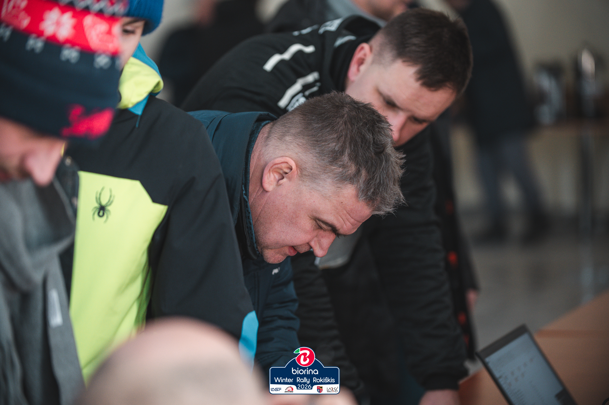 „Biorina Winter Rally Rokiškis 2026“ dalyviai, susitvarkę administracinius formalumus, jau gali vykti į greičio ruožus – šiandien numatytas jų susirašymas bei patikra.