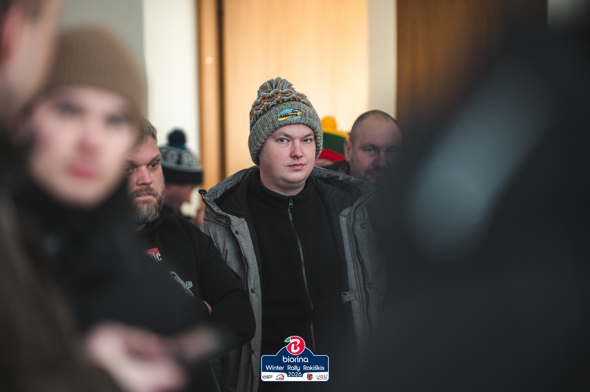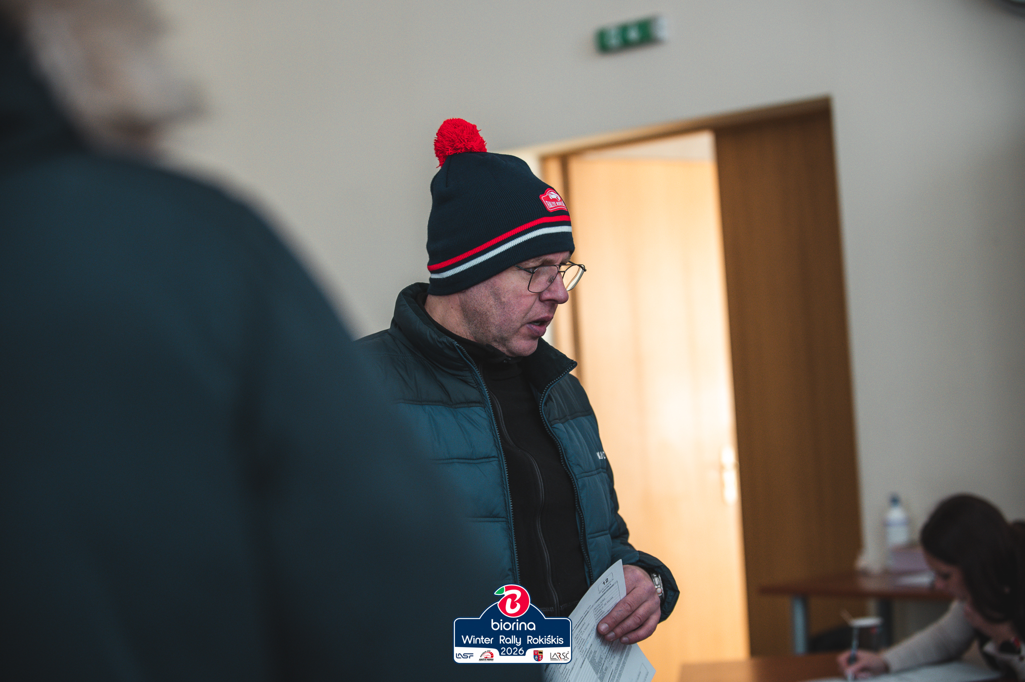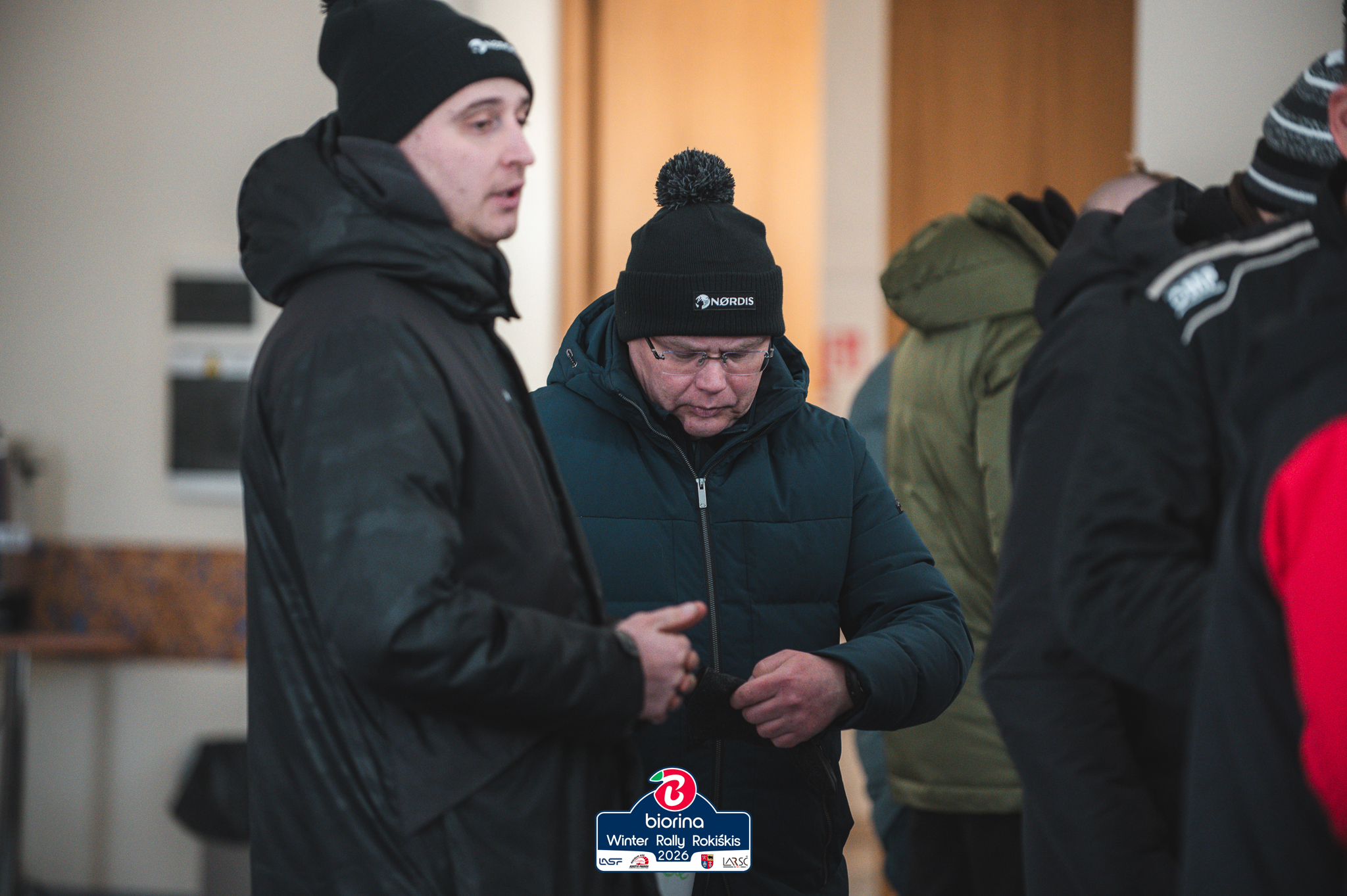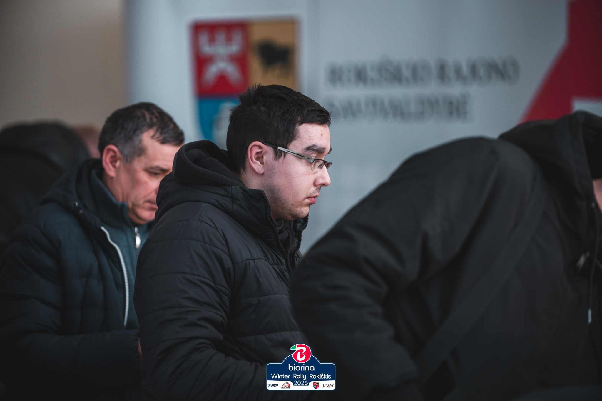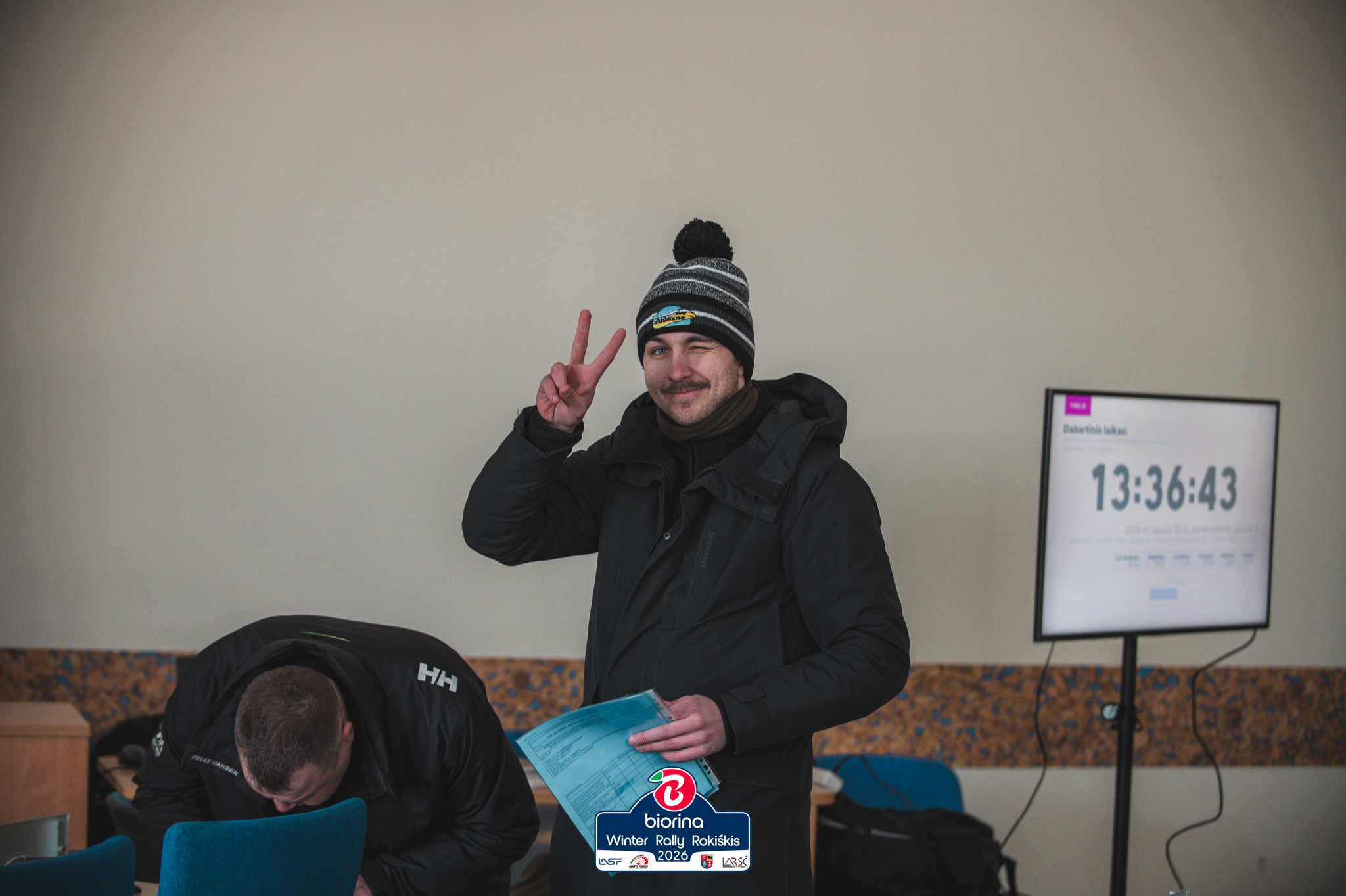„Biorina Winter Rally Rokiškis 2026“ dalyviai, susitvarkę administracinius formalumus, jau gali vykti į greičio ruožus – šiandien numatytas jų susirašymas bei patikra.